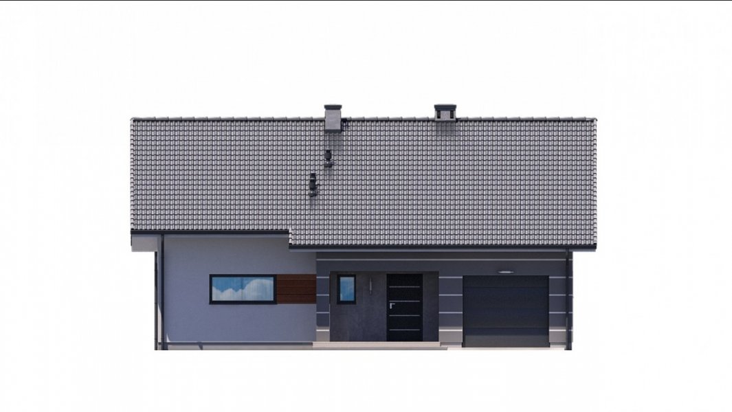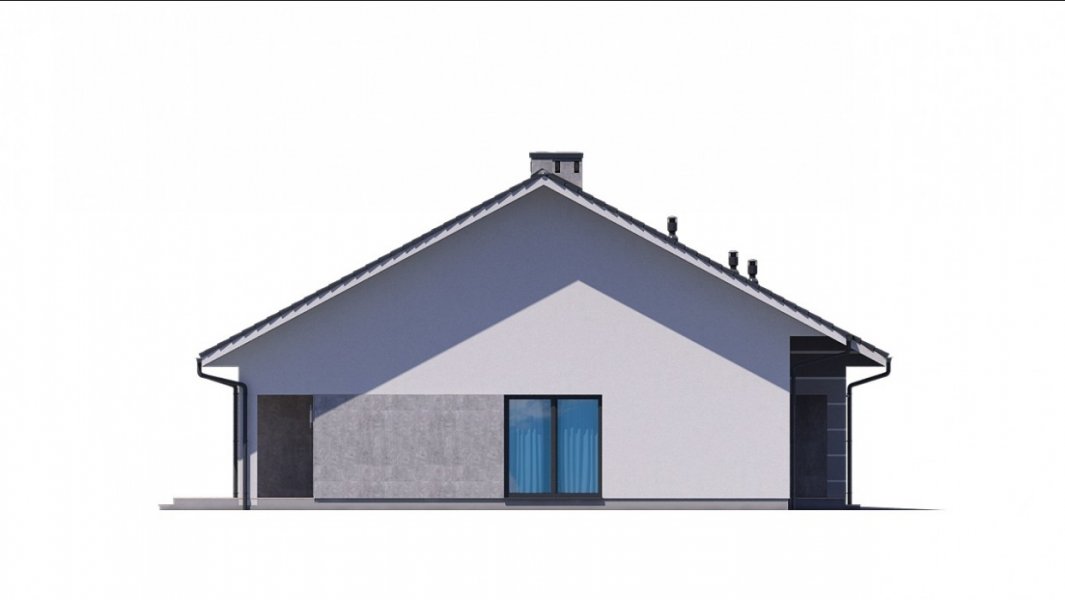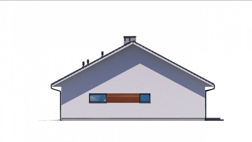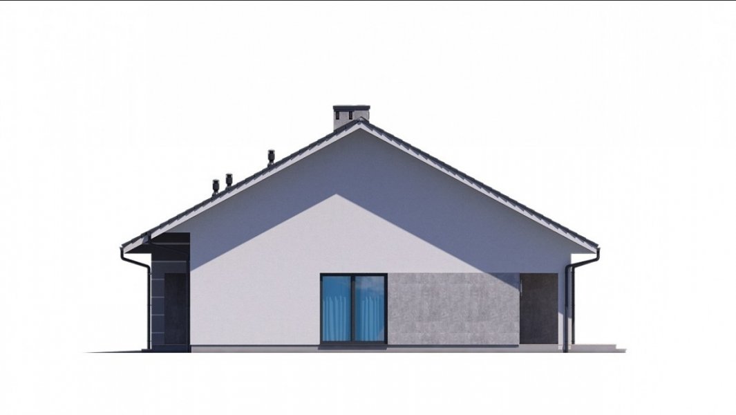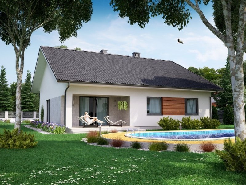 Dom pokryty jest dwuspadowym dachem, a jego prosta bryła sprawia, że dom jest niedrogi w budowie.