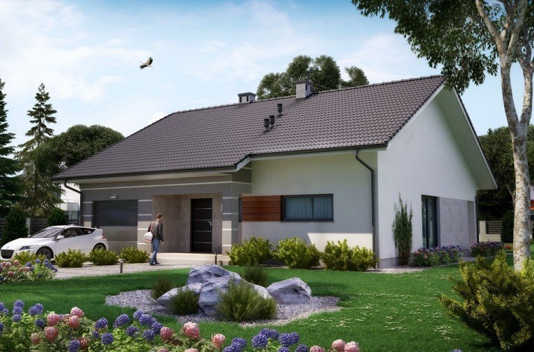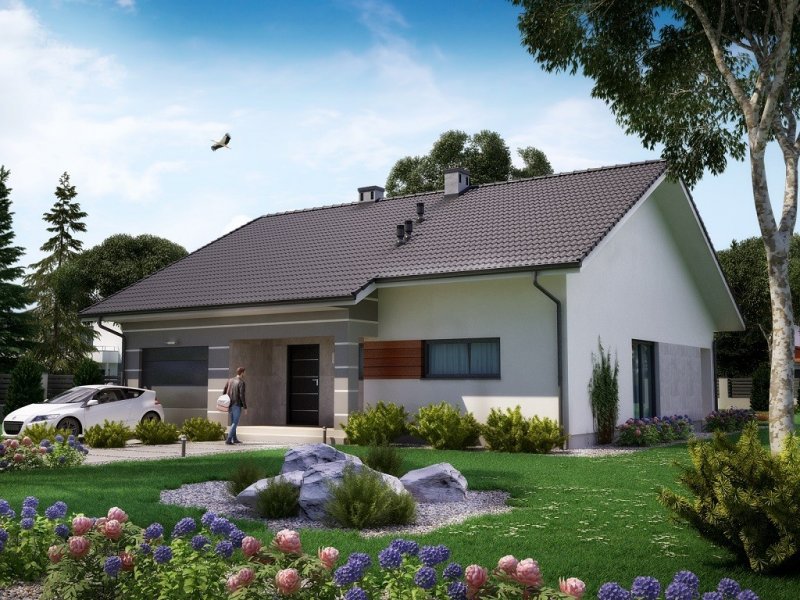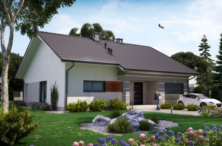 Ka18 to tradycyjny dom parterowy z jednostanowiskowym garażem zaprojektowany dla 3-4 osobowej rodziny.