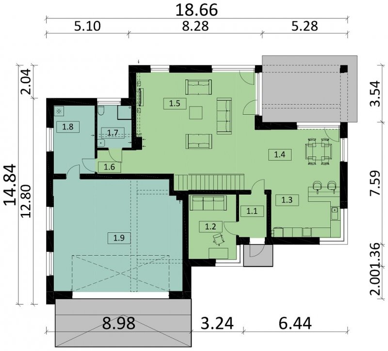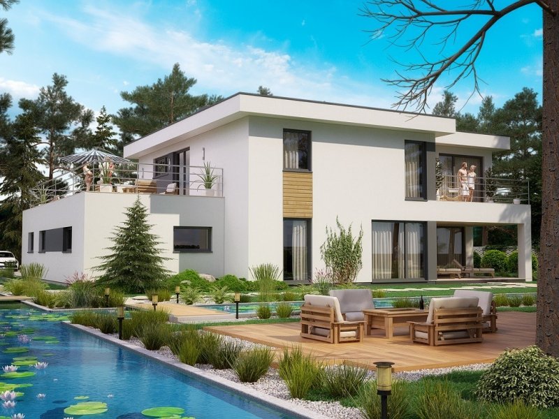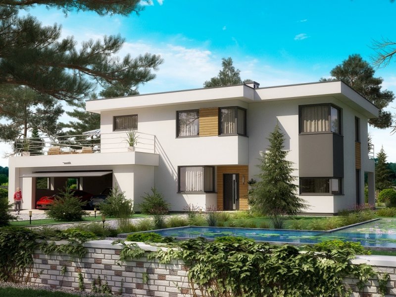 Ka20 przestronny, nowoczesny dom piętrowy z dużym garażem. Na parterze zlokalizowano przestronny salon, jadalnię, kuchnię oraz dodatkowe pomieszczenie, które może posłużyć jako gabinet lub pokój dla gości. Na piętrze usytuwowano 3 sypialnie, pokój, garderobę oraz łazienkę połączoną z pralnią.