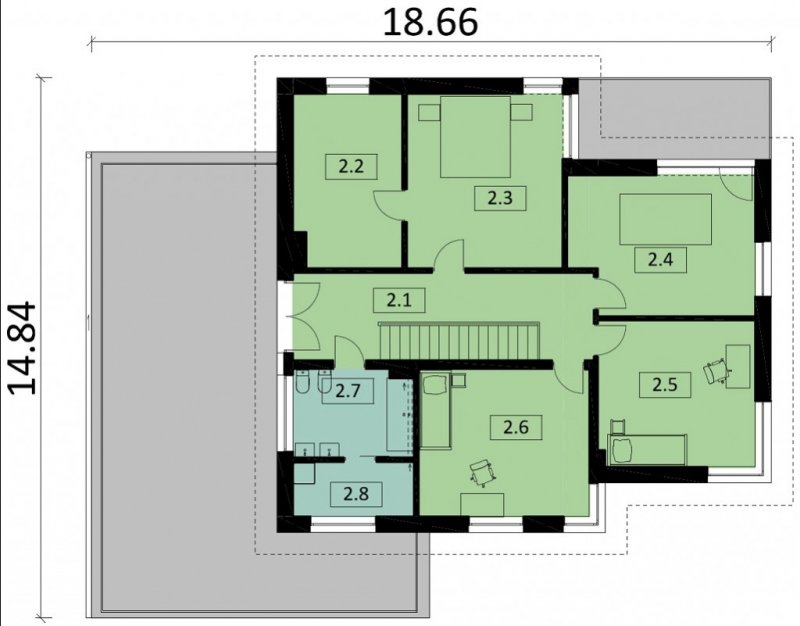 - Min. wymiary działki 22.84x26.66 m