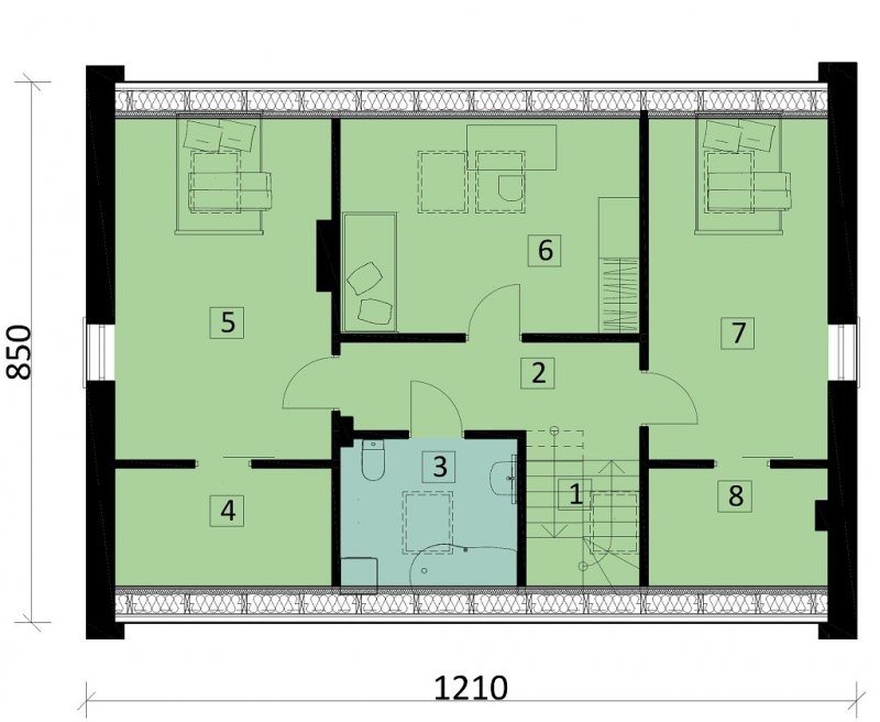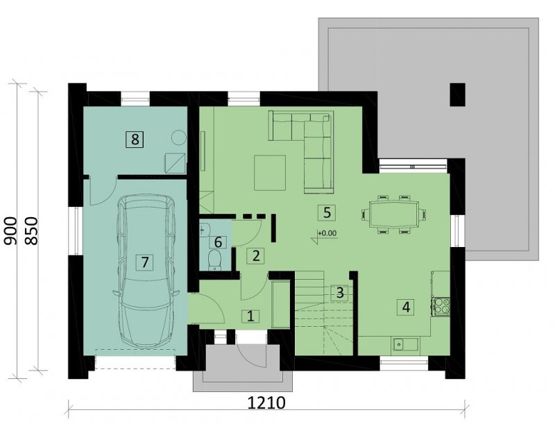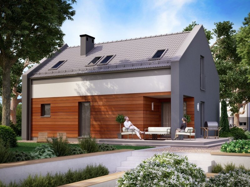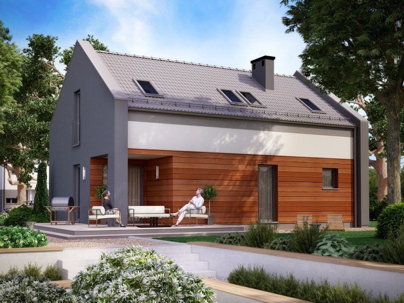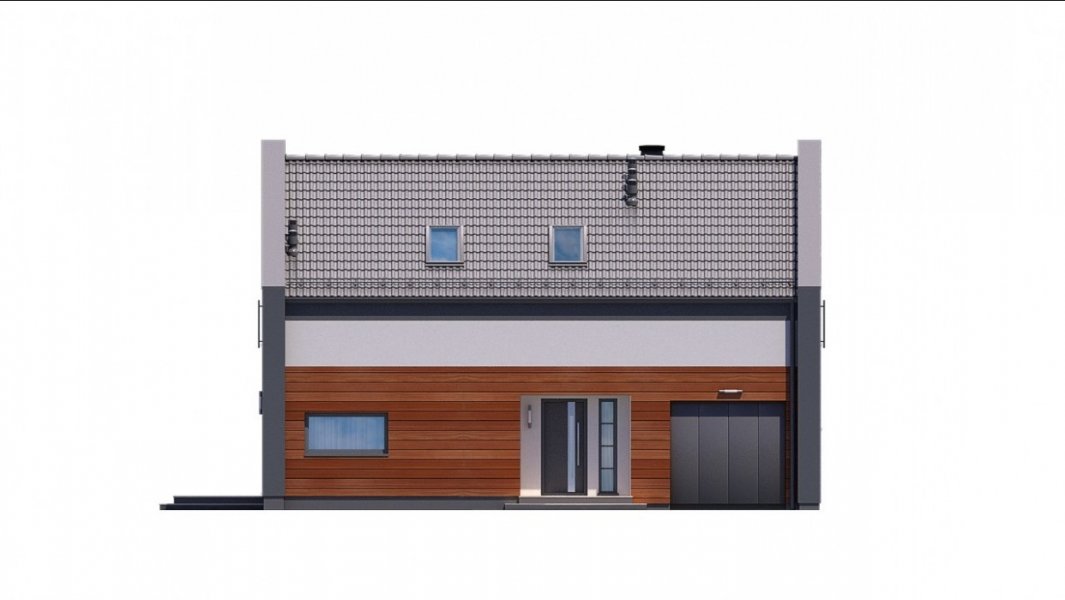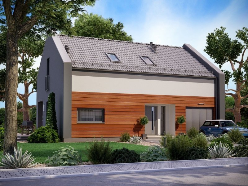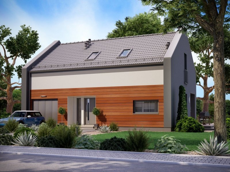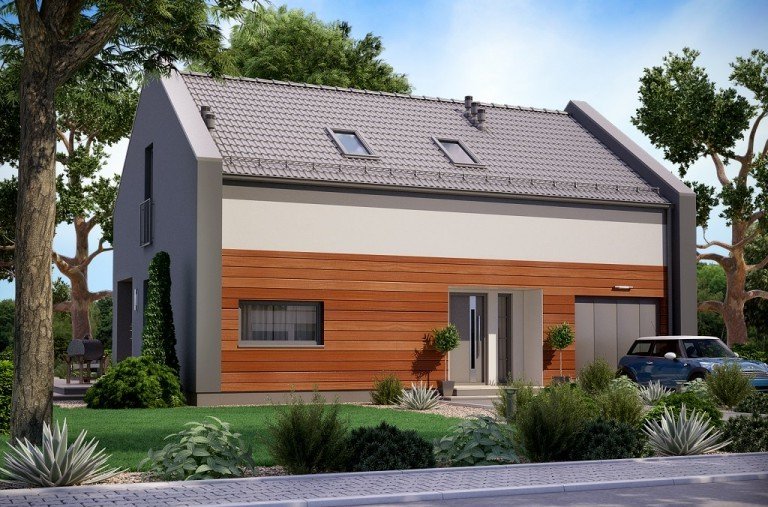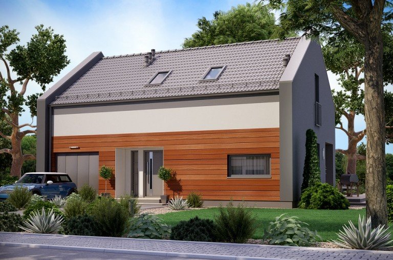 Ka25 to mały dom parterowy z poddaszem użytkowym i garażem jednostanowiskowym dla 4-5 osobowej rodziny.