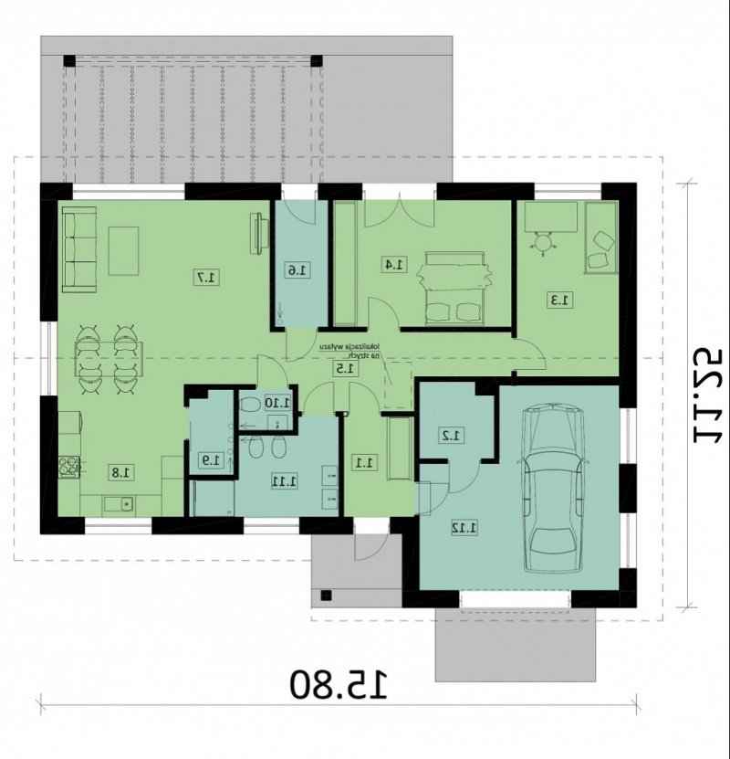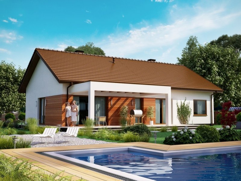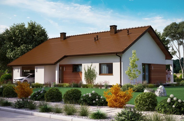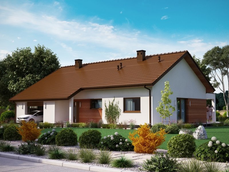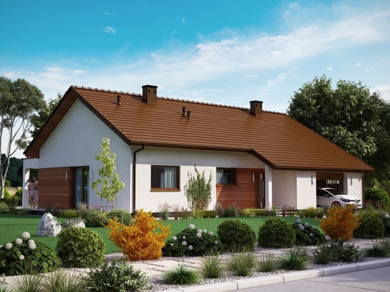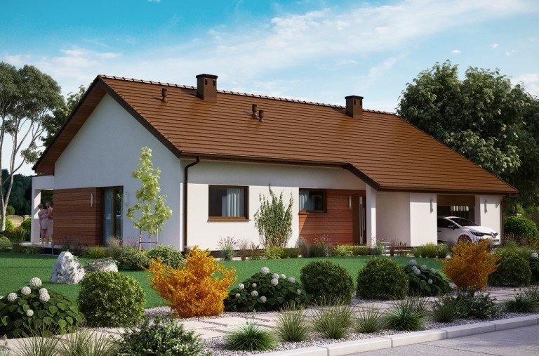Ka30 to mały parterowy dom w stylu tradycyjnym z dwoma sypialniami i dużym jednostanowiskowym garażem.