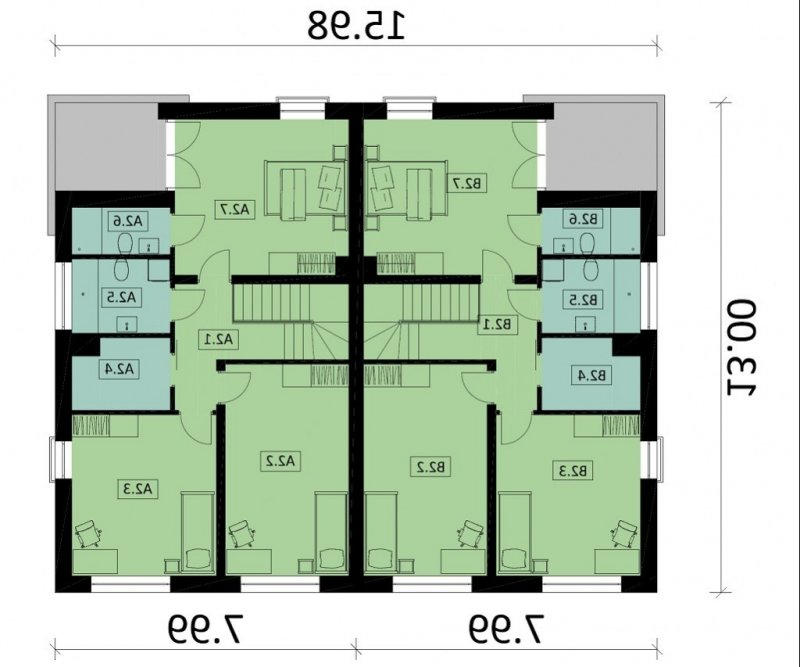Ka31 to nowoczesny dom dwulokalowy. Parter to część dzienna budynku, z którego składa się m. in. salon z aneksem kuchennym, toaleta oraz dodatkowy pokój. Natomiast piętro to część nocna z 3 sypialniami, 2 łazienkami oraz garderobą.