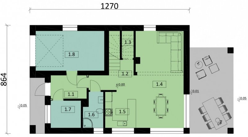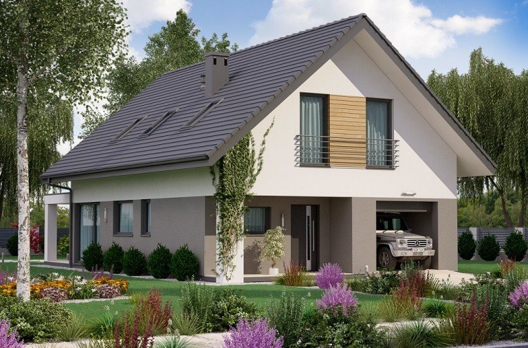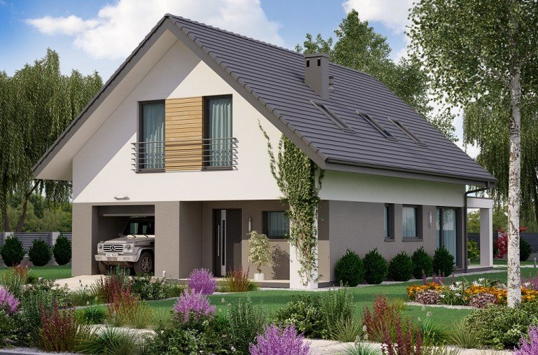 Projekt gotowy Ka33 to nowoczesny dom parterowy z poddaszem użytkowym, który zaspokoi wymagania 4-5 osobowej rodziny.W niewielkiej bryle na parterze zaprojektowano przestronny garaż jednostanowiskowy oraz duże pomieszczenie gospodarcze, przestronną łazienkę oraz duży salon z aneksem kuchennym.