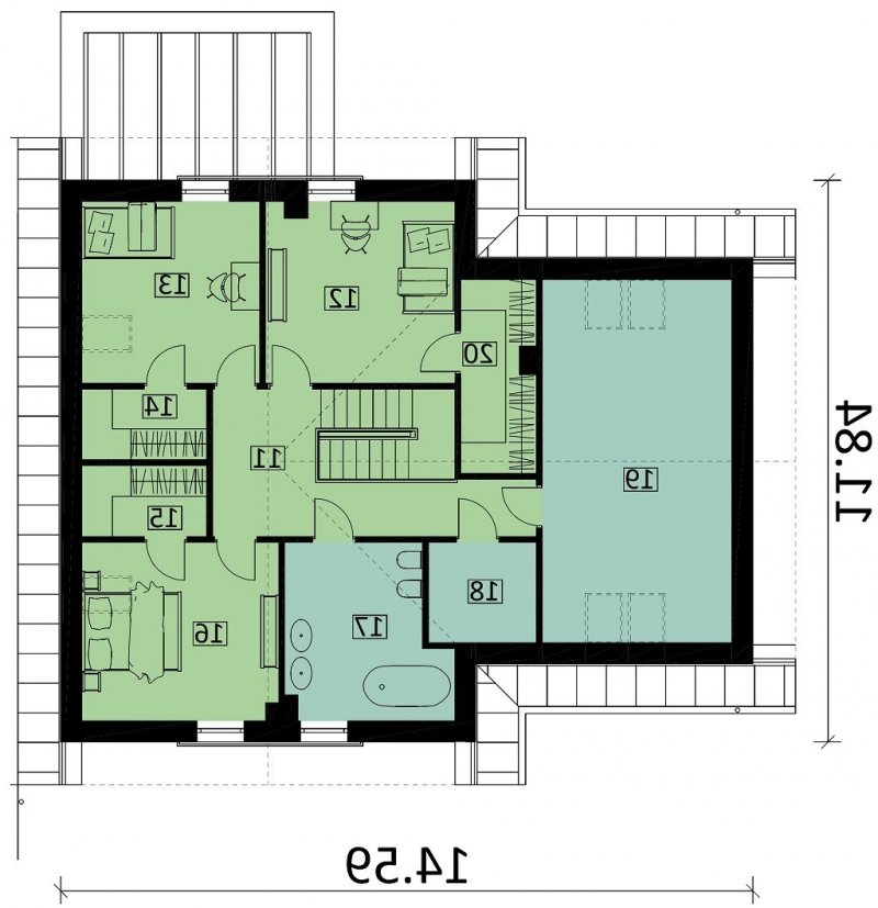 - Min. wymiary działki 20.89x22.64 m