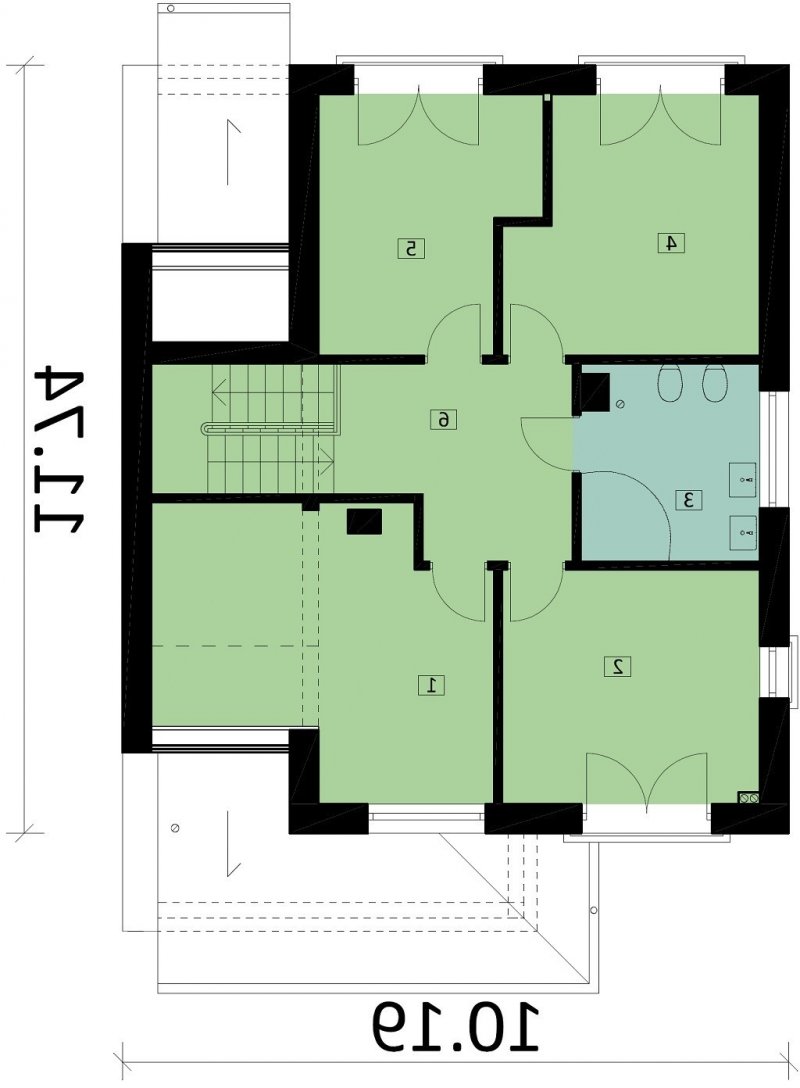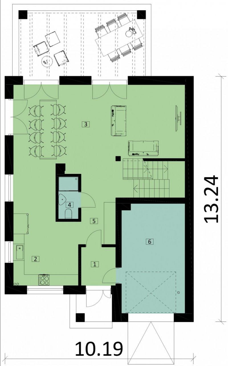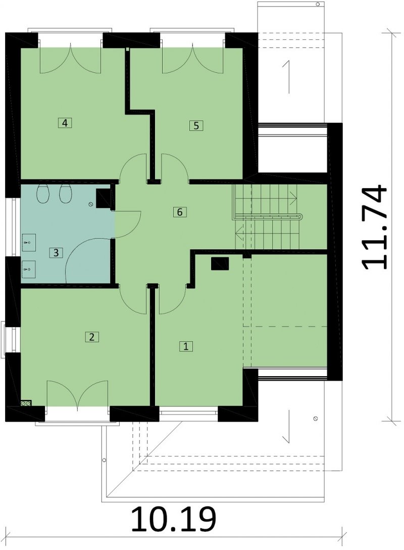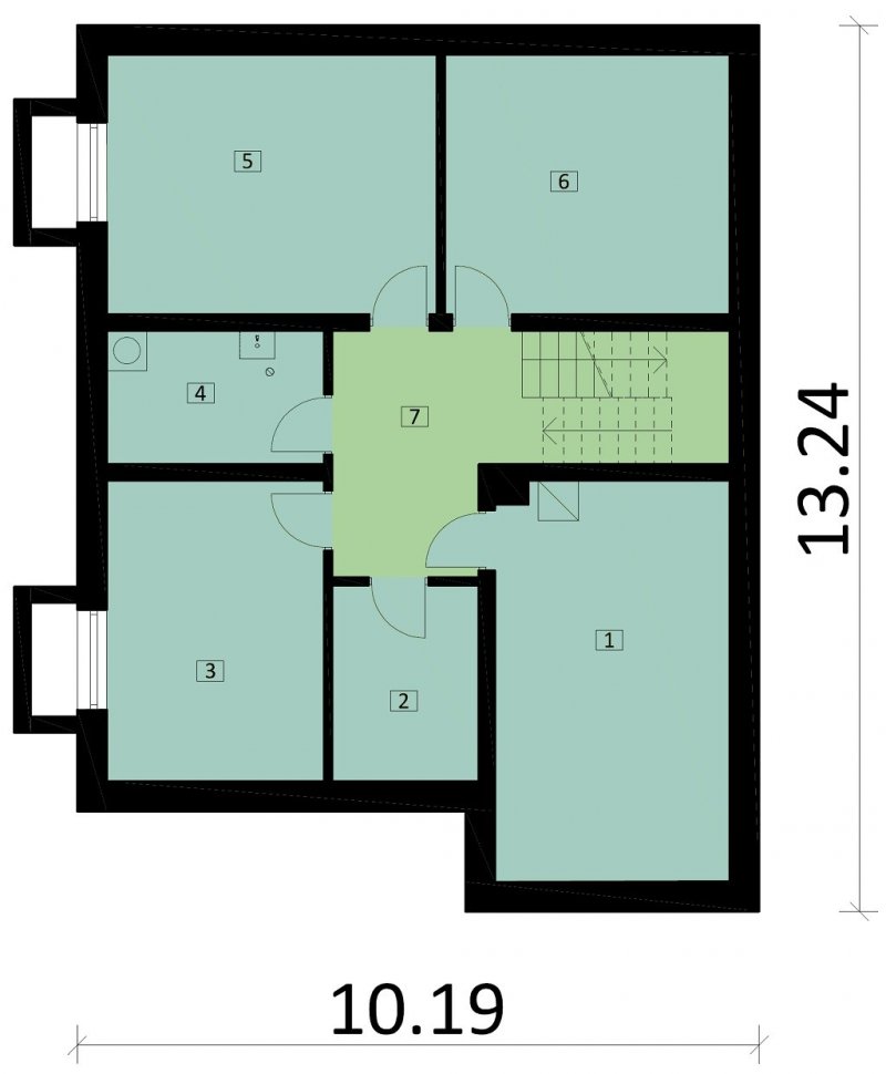Ka60 S to projekt domu piętrowego z podpiwniczeniem. Jego powierzchnia użytkowa została rozplanowana na 153,48 m2. Strefa dzienna to otwarta przestrzeń, w której zaprojektowano kuchnię, jadalnię oraz salon. Duże przeszklenia naturalnie doświetlą wnętrze domu. Na piętrze wydzielono strefę nocną, w której znajdują się 4 sypialnie i łazienka.