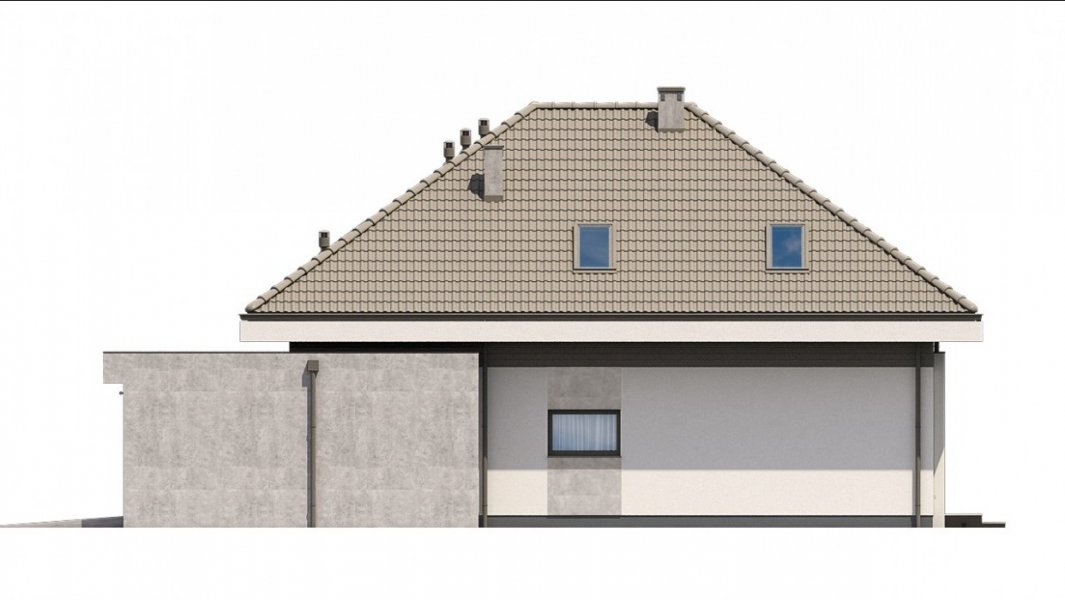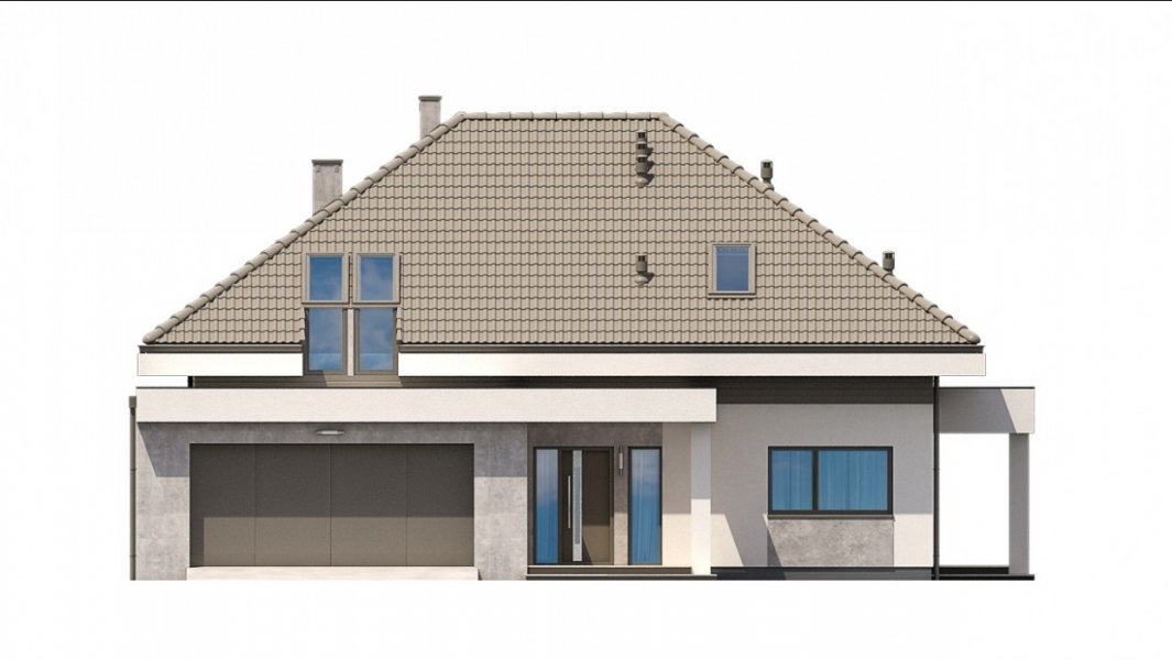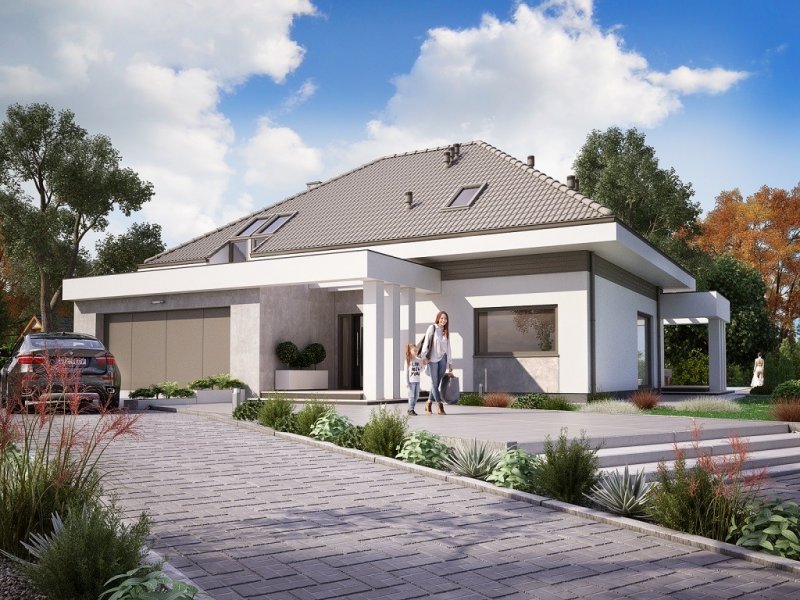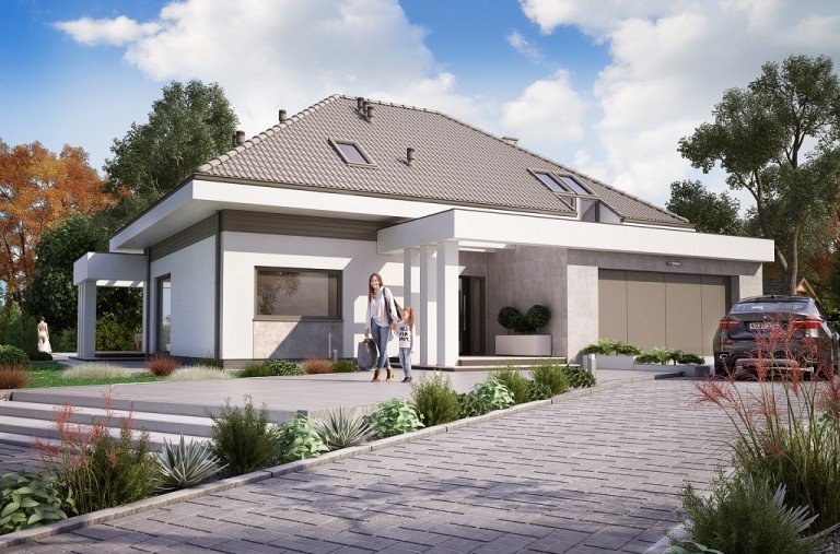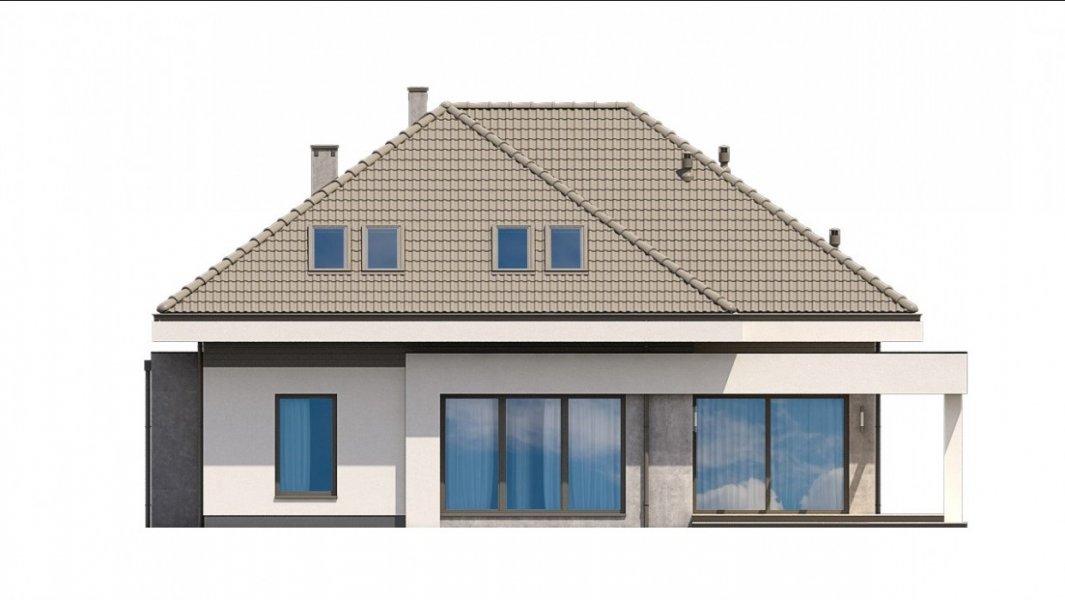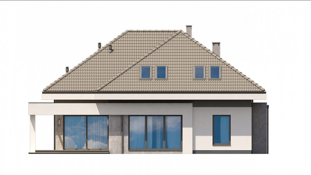 Ka61 projekt domu z użytkowym poddaszem, którego powierzchnię rozplanowano na blisko 183 m2. W strefie dziennej zaprojektowany został przestronny salon z jadalnią o powierzchni 50 m2. Dodatkowo tuż przy schodach wydzielony został pokój, który może pełnić funkcję gabinetu lub pokoju dla gości. Na poddaszu zaprojektowano 3 duże sypialnie, 2 garderoby, łazienkę oraz pralnię. Projekt tego domu jest przestronny i funkcjonalny.