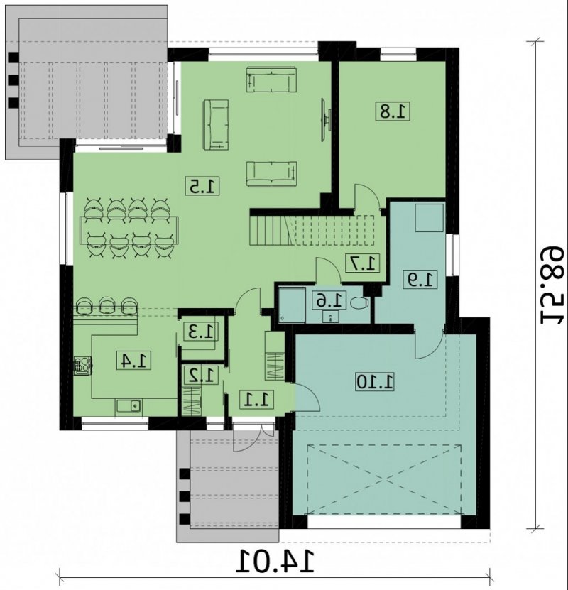 - Min. wymiary działki 23.69x21.01 m