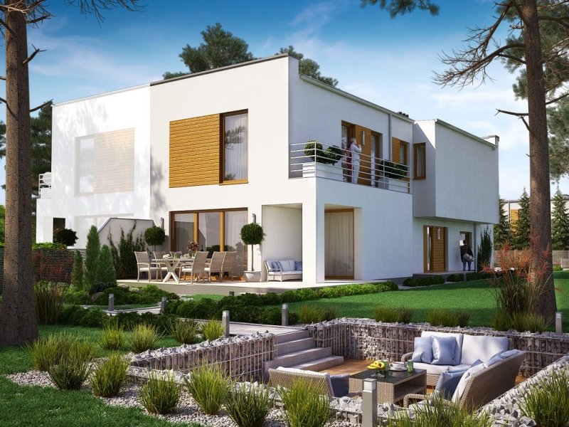 Ka63S to nowoczesny projekt domu w zabudowie bliźniaczej. Wejście do domu zaprojektowano na bocznej ścianie domu. Parter to otwarta przestrzeń, w której nie zabraknie salonu, jadalni oraz kuchni. Na piętrze znajdują się sypialnie, gabinet, łazienka oraz pralnia. Dodatkowym udogodnieniem jest schowek zlokalizowany tuż przy schodach.