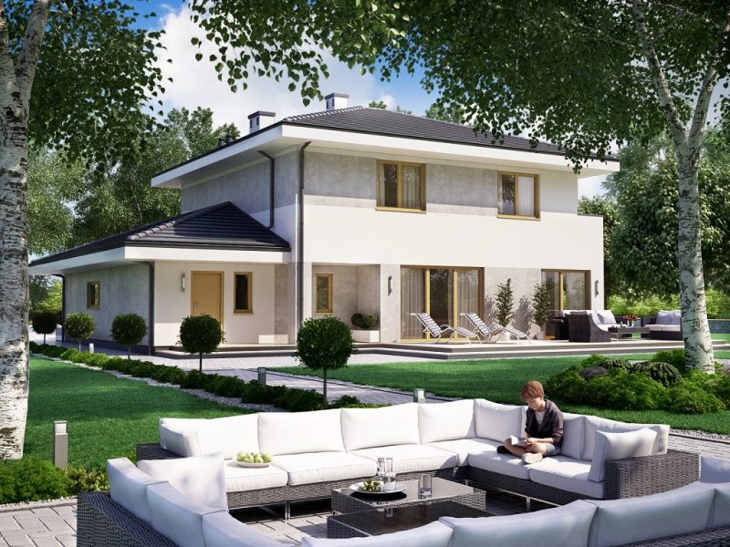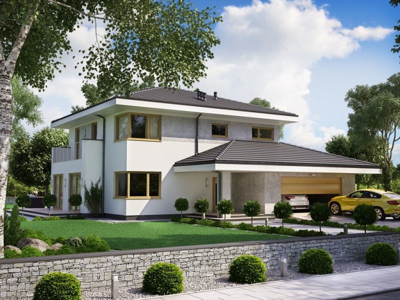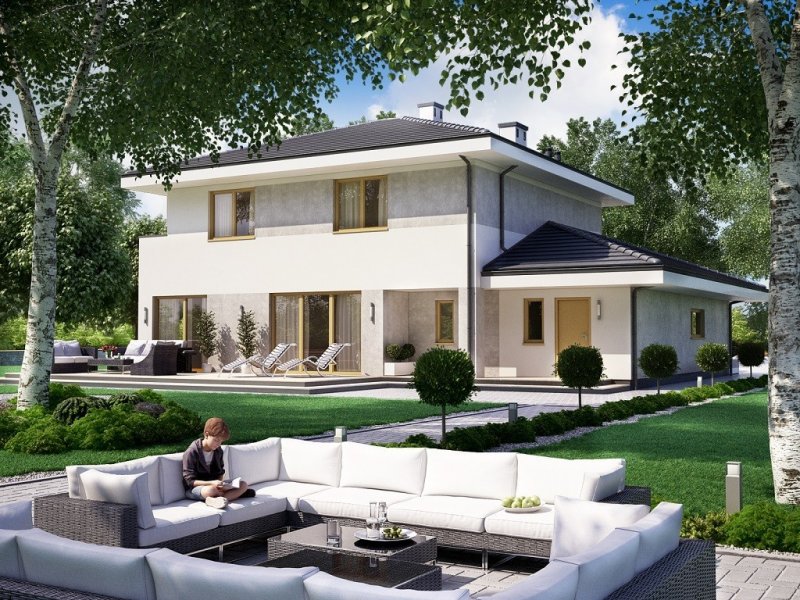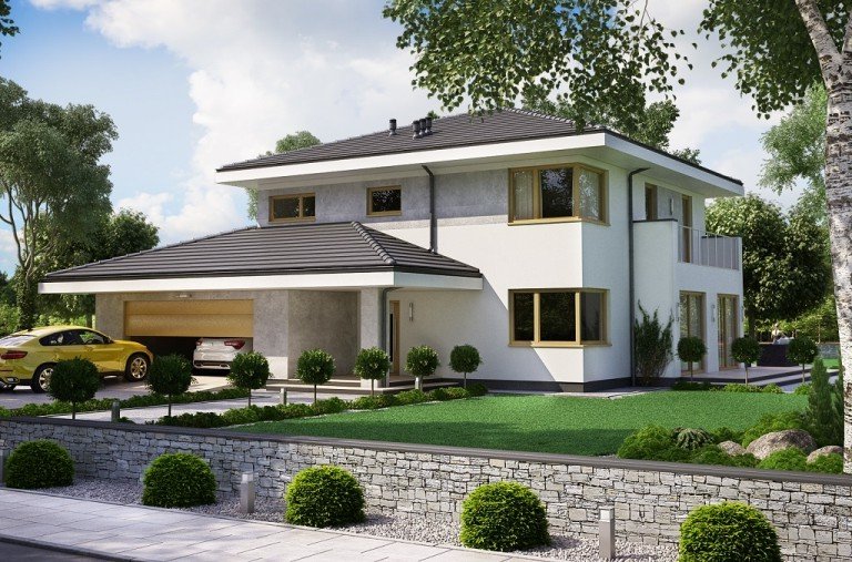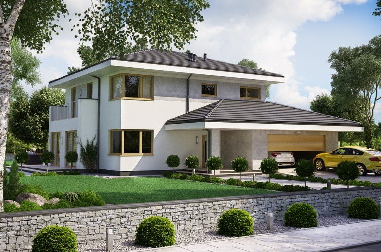 Ka64 to przestronny projektu domu piętrowego wykonany w technologi murowanej. Salon z otwartą kuchnią zajmuje 60m2 powierzchni użytkowej parteru. Na piętrze domu zaprojektowano 4 sypialnie, pralnię oraz łazienkę. W projekcie zostało wygospodarowane miejsce na dwustanowiskowy garaż oraz pomieszczenie gospodarcze.