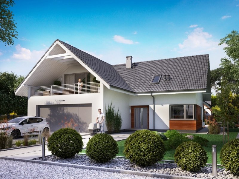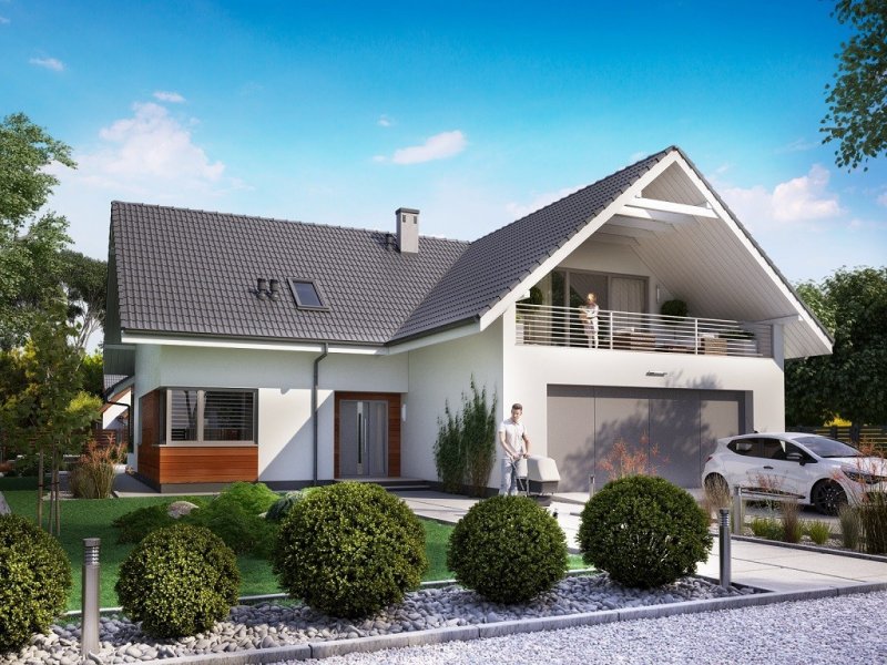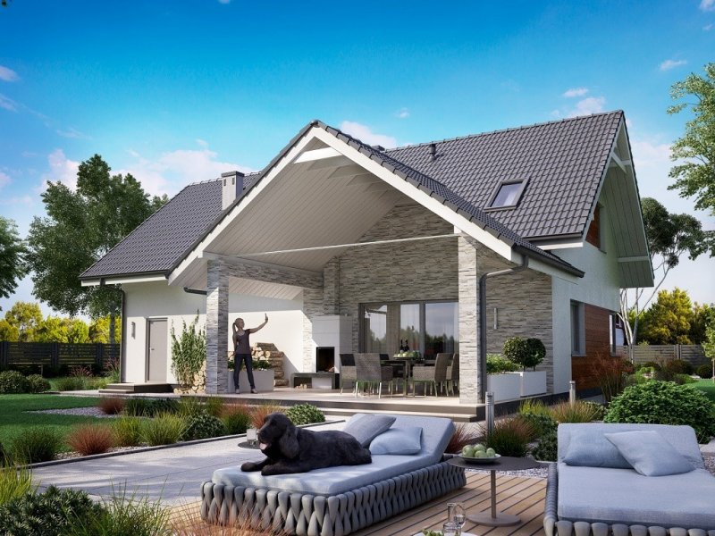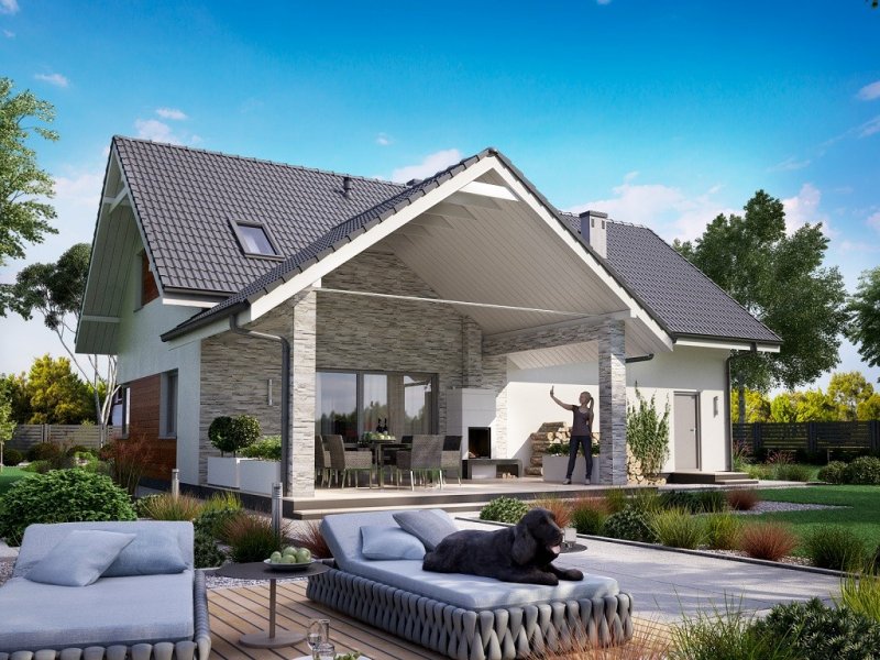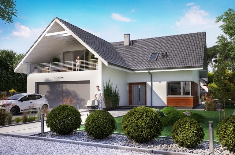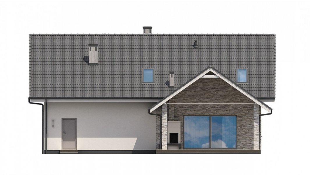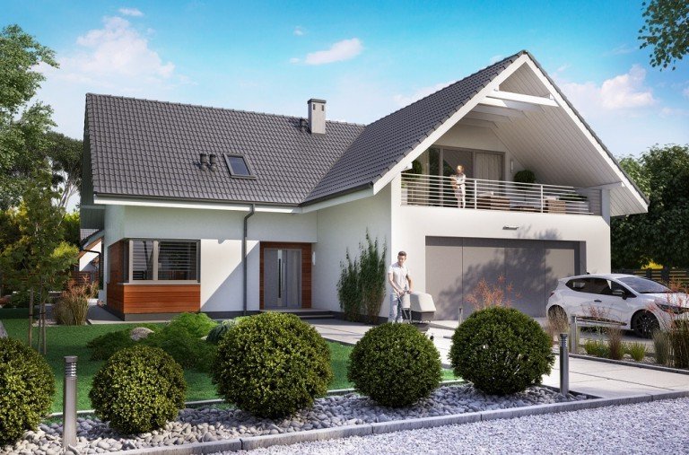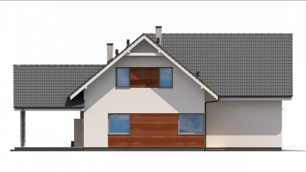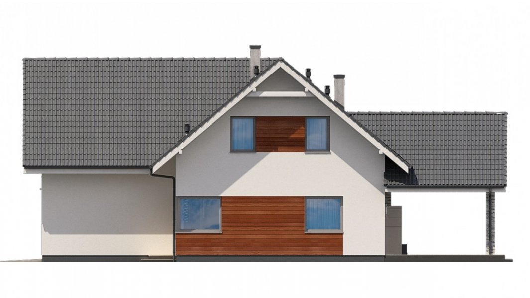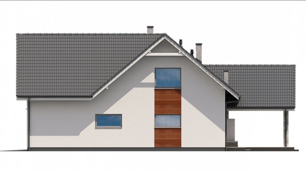 Ka76 to projekt domu o powierzchni użytkowej 146,20 m2, która została rozplanowana na parterze oraz na poddaszu. Na parterze zaprojektowana została otwarta kuchnia, jadalnia oraz salonem z wyjściem na zadaszony taras. Poddasze to strefa nocna, w której znajdują się 3 sypialnie, garderoba, łazienka, pralnia oraz dodatkowy pokój, który może pełnić funkcję pokoju gier. W projekcie wydzielony został duży garaż z pomieszczeniem gospodarczym.