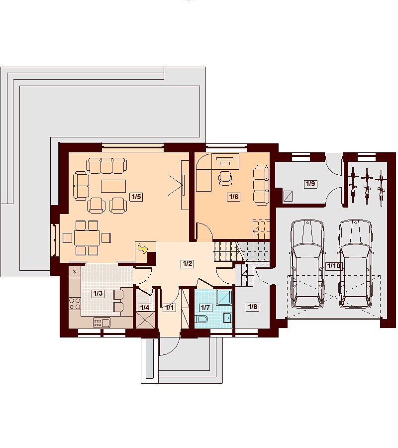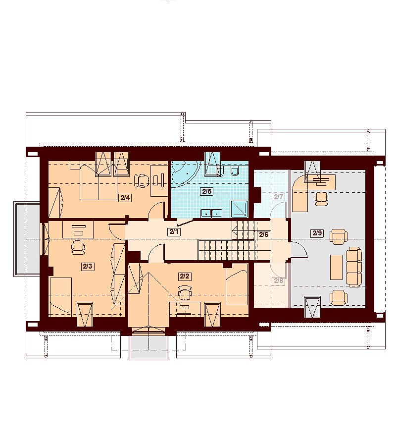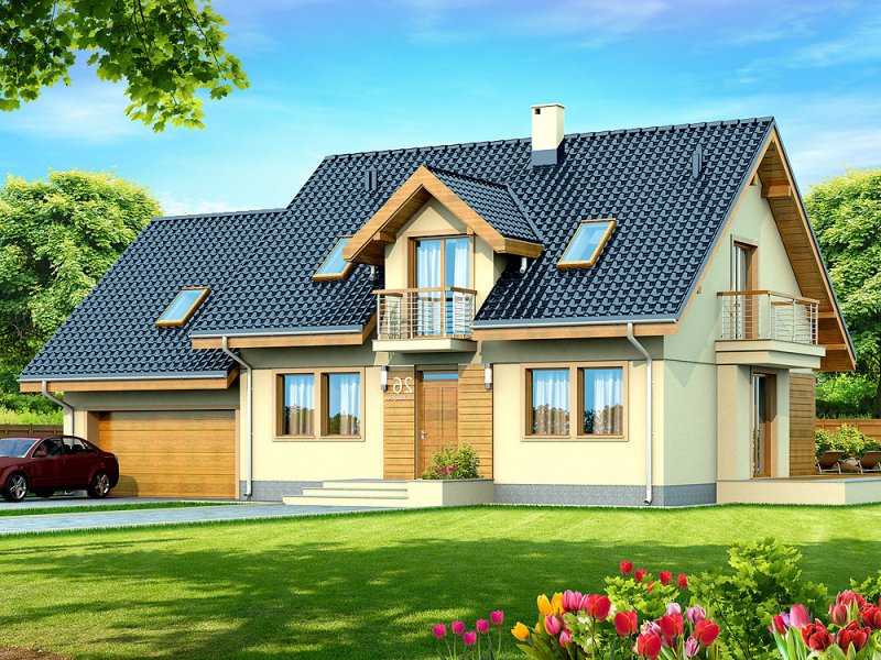 Karmelita BIS 2M to piękny, funkcjonalny dom przeznaczony dla 3-6 osobowej rodziny o eleganckiej formie i współczesnej estetyce. Jest to budynek parterowy z użytkowym poddaszem, niepodpiwniczony, z garażem dwustanowiskowym. Na parterze zlokalizowana jest obszerna strefa dzienna składająca się z kuchni (która w zależności od potrzeb może być zamykana lub otwarta) jadalni ze słonecznym wykuszem oraz salonu otwartego na taras i ogród. Uzupełnieniem kuchni jest spiżarnia. Dodatkowo na parterze zaprojektowano pokój, który może służyć jako pokój gościnny bądź gabinet, łazienkę, pomieszczenie gospodarcze, garaż oraz kotłownię dostępną z garażu z wyjściem na ogród dzięki czemu może ona stanowić też miejsce składowania narzędzi ogrodowych. W wiatrołapie, gabinecie oraz pomieszczeniu gospodarczym przewidziano miejsca na szafy wnękowe. Na poddaszu znalazły się trzy pokoje, obszerna i wygodna łazienka a także strych, dostępny z półpiętra, który może stanowić dodatkowy pokój, siłownię czy salę z kinem domowym. Ze spocznika schodów w przestrzeni strychu wydzielono przestrzeń na pralnię i garderobę, możliwa jest też inna aranżacja przestrzeni strychu. W projektowaniu Karmelity BIS 2M szczególną uwagę zwrócono na atrakcyjny wygląd zewnętrzny, proporcjonalność bryły budynku, odpowiednie doświetlenie i funkcjonalne rozplanowanie pomieszczeń przy zachowaniu prostoty konstrukcji oraz zwartości bryły domu. Dom zaprojektowano jako energooszczędny. Dostępna również wersja projektu z garażem jednostanowiskowym (Karmelita BIS).