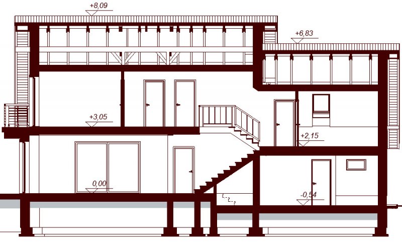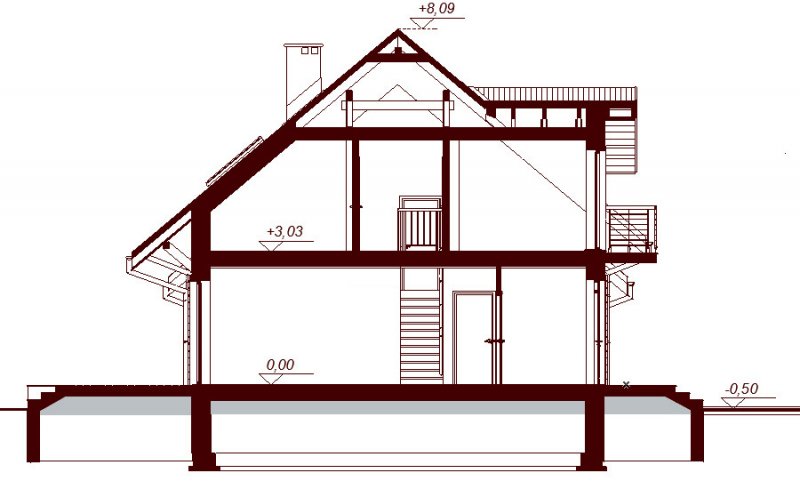 Ściany zewnętrzne i wewnętrzne nośne z bloczków Ytong, docieplone 18cm styropianu. Ścianki wewnętrze działowe na parterze z bloczków Silka, na poddaszu z płyt GK bądź murowane. Ściany fundamentowe z bloczków betonowych. Strop gęstożebrowy Teriva. Schody wewnętrzne żelbetowe. Wszystkie technologie można zmienić na etapie adaptacji. Elewacje wykończone tynkiem mineralnym. Tynki wewnętrzne gipsowe lub cementowo-wapienne. Dachówka cementowa lub ceramiczna. Stolarka okienna drewniana lub PCV.