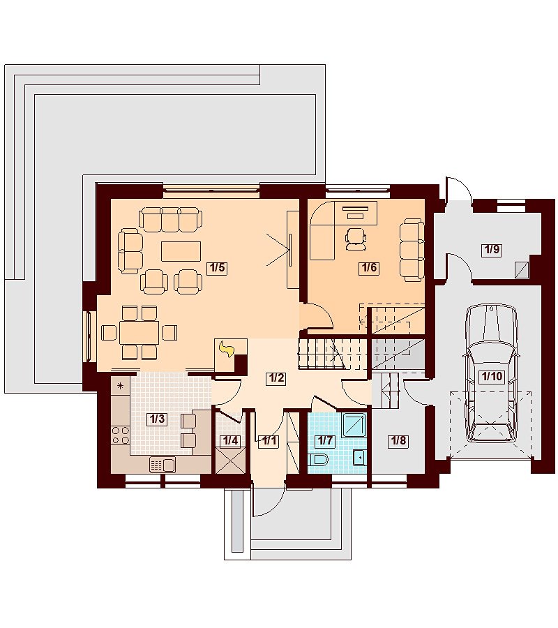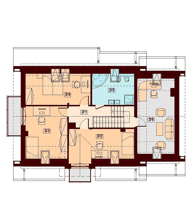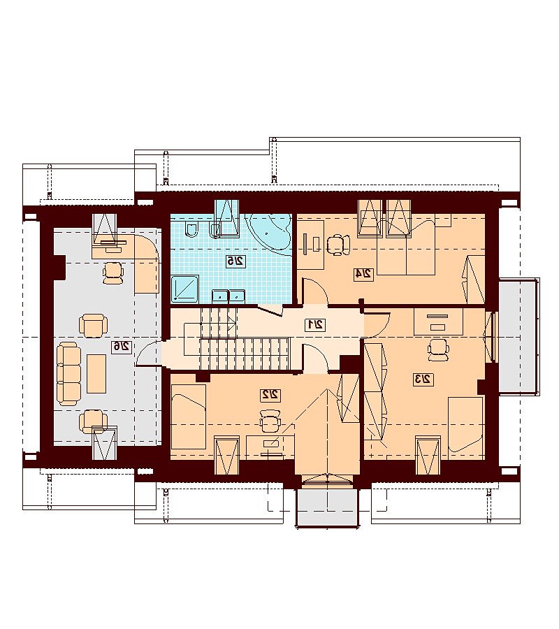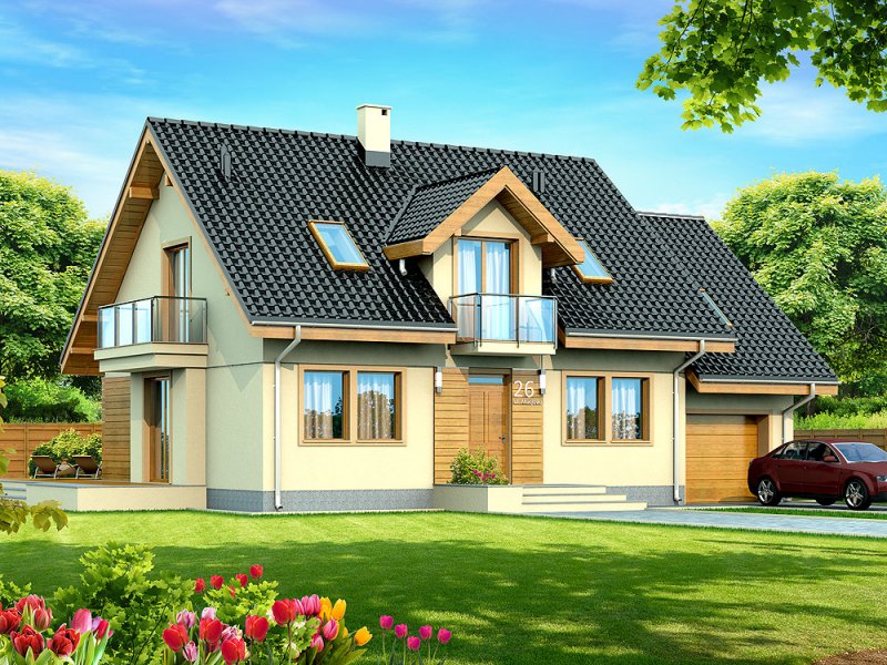 Karmelita BIS to piękny, funkcjonalny dom przeznaczony dla 3-6 osobowej rodziny o eleganckiej formie i współczesnej estetyce. Jest to budynek parterowy z użytkowym poddaszem, niepodpiwniczony, z garażem jednostanowiskowym. Na parterze zlokalizowana jest obszerna strefa dzienna składająca się z kuchni (która w zależności od potrzeb może być zamykana lub otwarta) jadalni ze słonecznym wykuszem oraz salonu otwartego na taras i ogród. Uzupełnieniem kuchni jest spiżarnia. Dodatkowo na parterze zaprojektowano pokój, który może służyć jako pokój gościnny bądź gabinet, łazienkę, pomieszczenie gospodarcze, garaż oraz kotłownię dostępną z garażu z wyjściem na ogród dzięki czemu może ona stanowić też miejsce składowania narzędzi ogrodowych. W wiatrołapie, gabinecie oraz pomieszczeniu gospodarczym przewidziano miejsca na szafy wnękowe. Na poddaszu znalazły się trzy pokoje, obszerna i wygodna łazienka a także strych, dostępny z półpiętra, który może stanowić dodatkowy pokój, garderobę, pralnię, siłownię czy salę z kinem domowym. W projektowaniu Karmelity BIS szczególną uwagę zwrócono na atrakcyjny wygląd zewnętrzny, proporcjonalność bryły budynku, odpowiednie doświetlenie i funkcjonalne rozplanowanie pomieszczeń przy zachowaniu prostoty konstrukcji oraz zwartości bryły domu. Dom zaprojektowano jako energooszczędny. Dostępna również wersja projektu z garażem dwustanowiskowym (Karmelita BIS 2M).