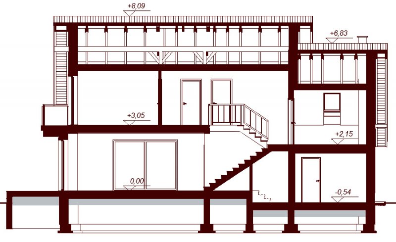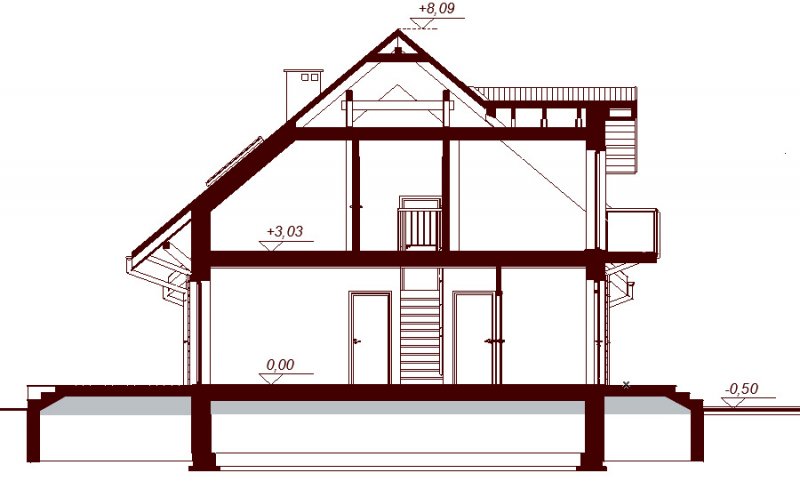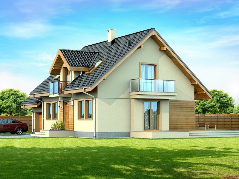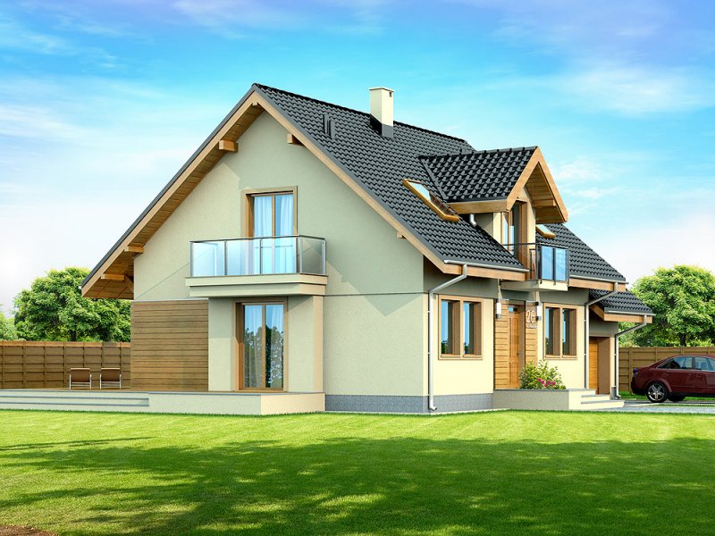 Ściany zewnętrzne i wewnętrzne nośne z bloczków Ytong, docieplone 18cm styropianu. Ścianki wewnętrze działowe na parterze z bloczków Silka, na poddaszu z płyt GK bądź murowane. Ściany fundamentowe z bloczków betonowych. Strop gęstożebrowy Teriva. Schody wewnętrzne żelbetowe. Wszystkie technologie można zmienić na etapie adaptacji. Elewacje wykończone tynkiem mineralnym. Tynki wewnętrzne gipsowe lub cementowo-wapienne. Dachówka cementowa lub ceramiczna. Stolarka okienna drewniana lub PCV.