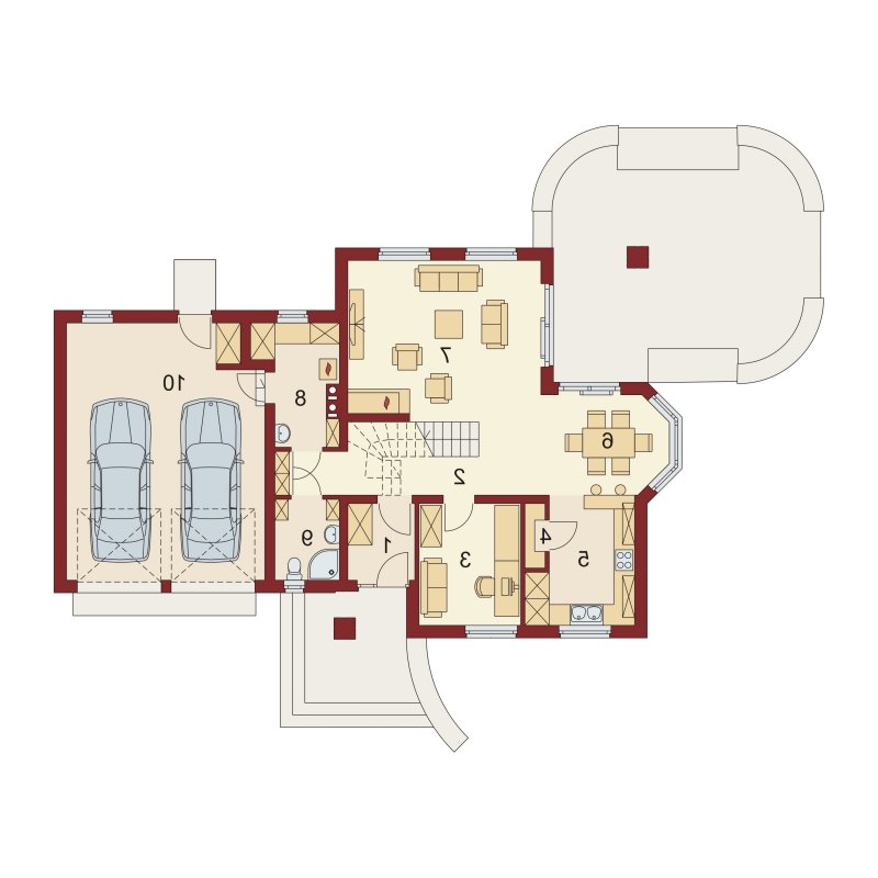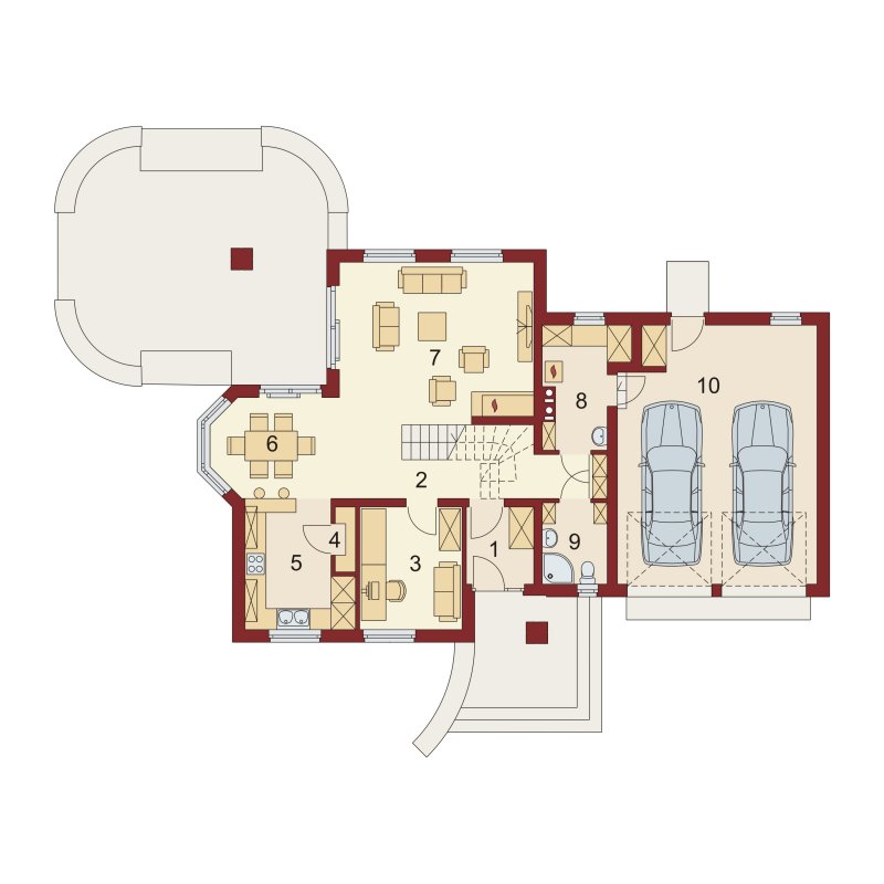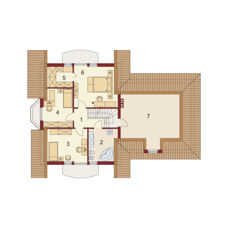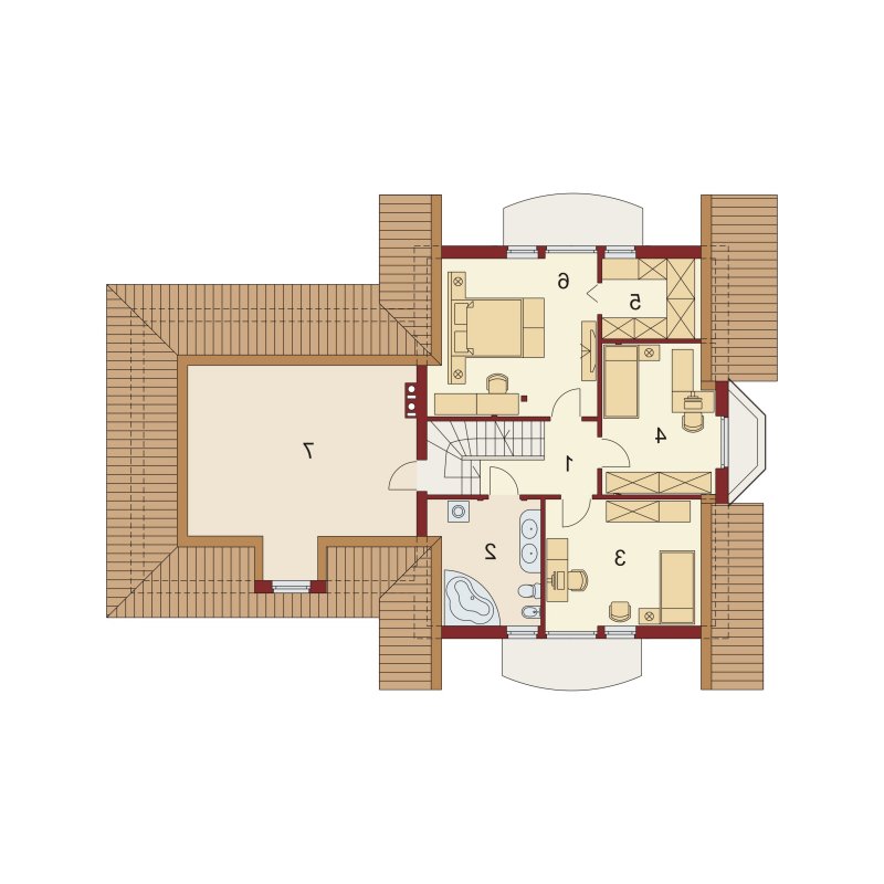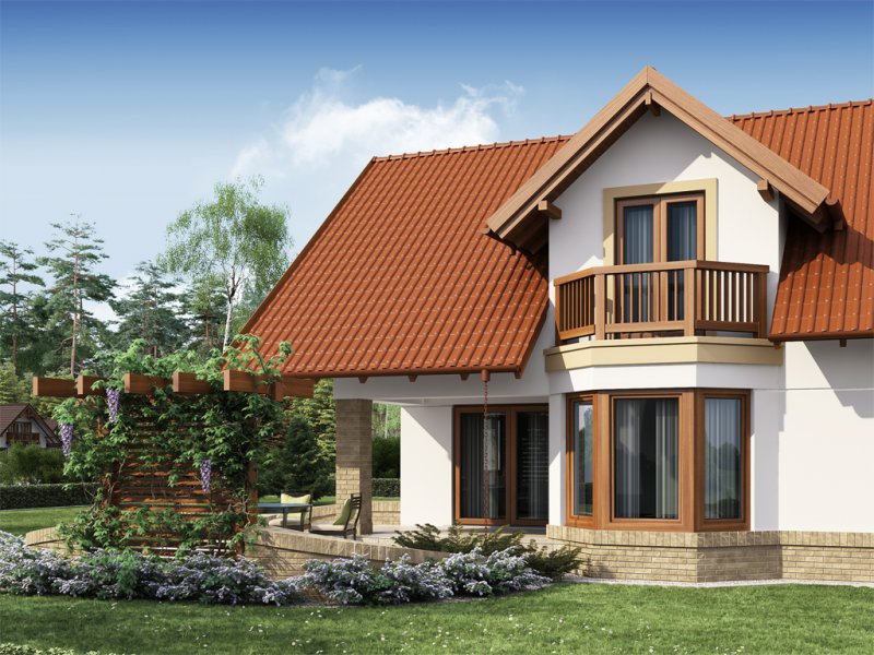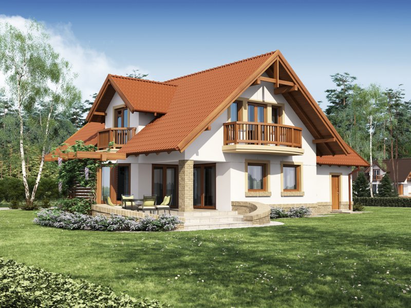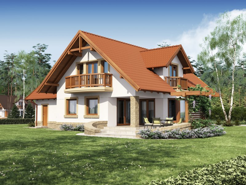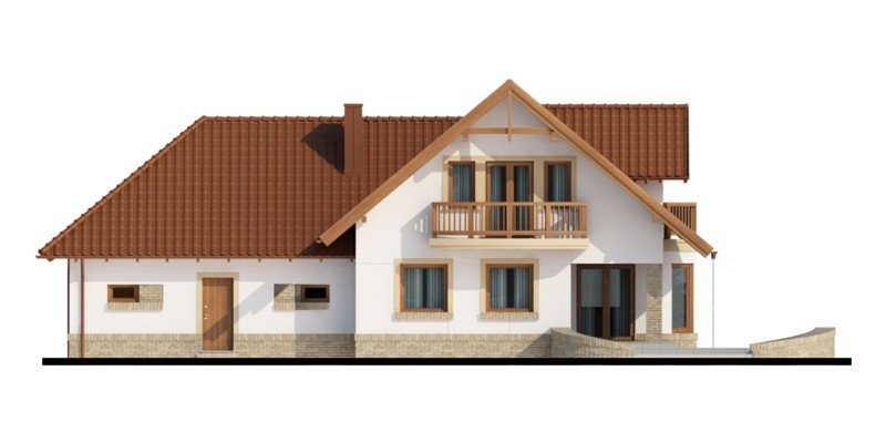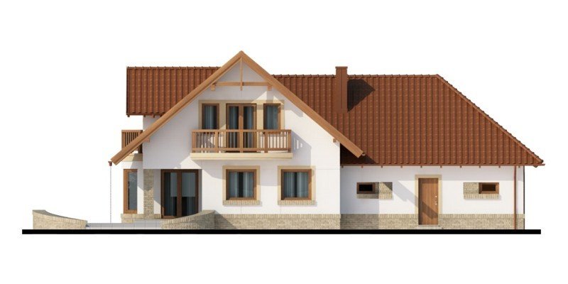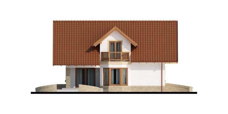 Kaspian to dom o klasycznej bryle, wyśmienicie wpisujący się w każde otoczenie. Ma on czytelny podział na trzy strefy funkcjonalne: dzienną i gospodarczą na parterze oraz nocną na poddaszu. W skład pierwszej z nich wchodzi salon z kominkiem oraz wyjściem na przekryty praktycznym zadaszeniem taras. Zaraz obok rysuje się charakterystyczna, położona w wykuszu, przestrzeń przeznaczona na jadalnię. Od kuchni dzieli ją pomysłowy barek. Cała strefa dzienna jest tak zaprojektowana, iż może funkcjonować jako jednorodna przestrzeń. Równocześnie, zarówno salon, jadalnia, jak i kuchnia, mogą stanowić osobne pomieszczenia. Zaraz przy wejściu znajduje się pokój, mogący służyć za np. gabinet czy pokój gościnny. Niejako osobną część budynku stanowi strefa gospodarcza. Przynależy do niej kotłownia, dostępna od strony mieszkalnej i garażowej oraz sam garaż, z osobnym wejściem od strony ogrodowej. Część nocna to trzy sypialnie, każda z nich z osobnym tarasem, garderoba oraz łazienka. Strych może być także zaadaptowany na dodatkowy pokój użytkowy.