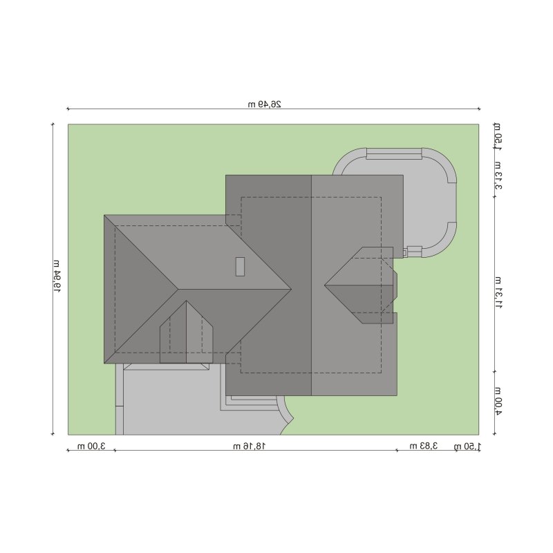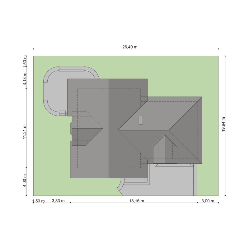 - Min. wymiary działki 26.49x19.94 m