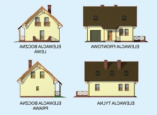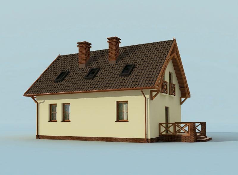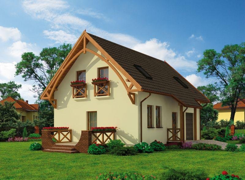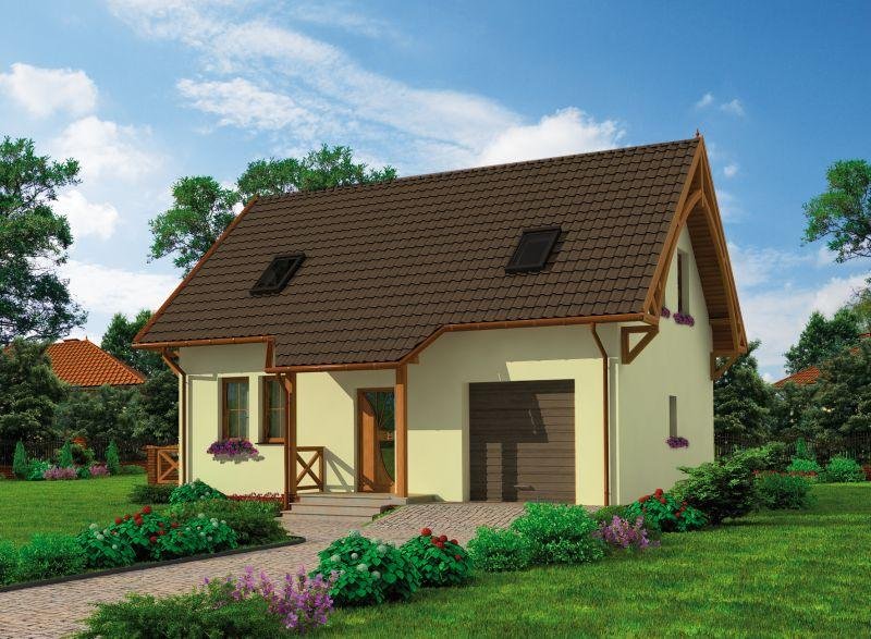 To przytulny rodzinny domek, który mimo niepozornego wyglądu ma bardzo wiele do zaoferowania. Na zewnątrz domek ten prezentuje się naprawdę wspaniale, co jest dopiero zapowiedzią tego co oferuje jego wnętrze. Na parterze tego uroczego budynku znajdują się kuchnia z jadalnią oraz salonem, niewielka łazienka i garaż. Połączenie kuchni z salonem gwarantuje Pani/Panu tego domku bezpośredni kontakt w życiu domowników oraz gdy w odwiedziny wpadną goście. Nie martwiąc się o to, że podczas przygotowywania napojów bądź posiłków przemknie choć jedna chwila wspólnej rozmowy. Równie satysfakcjonujące jest wyjście z salonu na taras, ponieważ dzięki niemu nasze życie towarzyskie może toczyć się zarówno w środku jak i na zewnątrz domku. Wyżej wspomniany taras, znajdujący się z boku budynku, zachwyci zarówno miłośników porannych posiłków na świeżym powietrzu, letniego grillowania oraz tych, którzy lubią imprezy wśród grona bliskich znajomych pod gwieździstym niebem. Bardzo korzystne jest bezpośrednie połączenie części mieszkalnej z garażem, gdyż przejście wewnątrz budynku uchroni nas od nie zawsze chcianej pogody oraz zapewni szybkie przejście do kotłowni, która znajduje się na tyłach garażu. Ogromnym plusem całego projektu jest pożądane przez wielu poddasze, które kryje przytulną sypialnie, dwa obszerne pokoje oraz przestronną łazienkę.