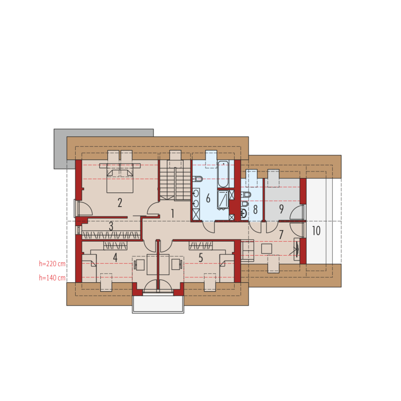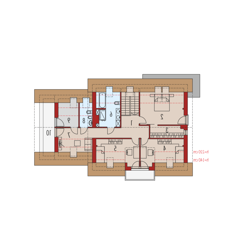 Dach: konstrukcja drewniana, ocieplenie wełna mineralna 30 cm, dachówka ceramiczna płaska Bergamo firmy Röben
