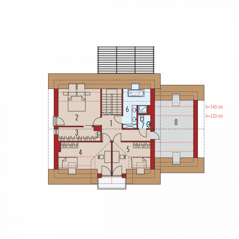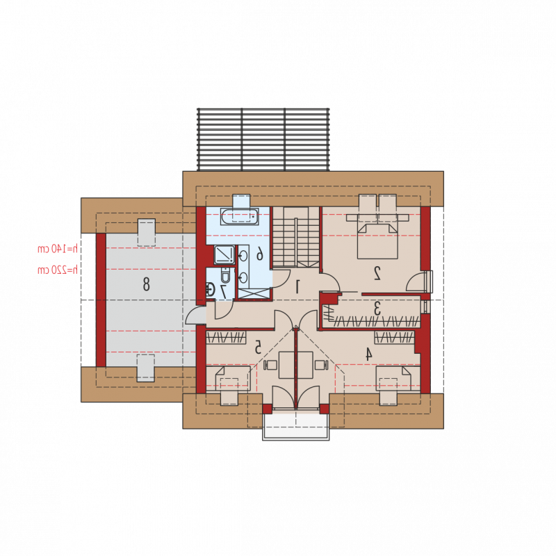 Dach: konstrukcja drewniana, ocieplenie wełna mineralna 30 cm, dachówka ceramiczna płaska Bergamo firmy Röben