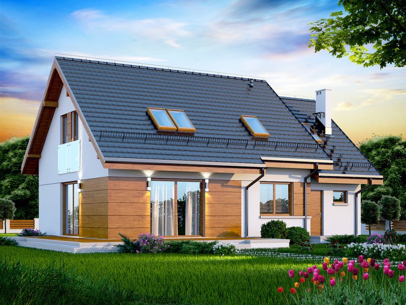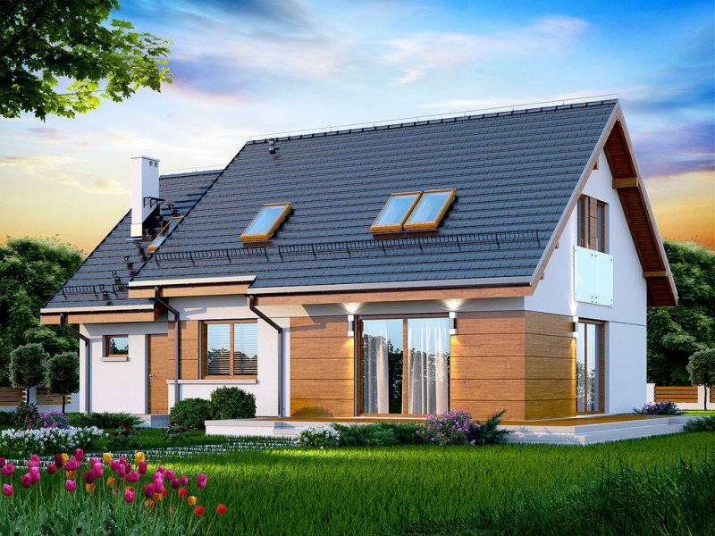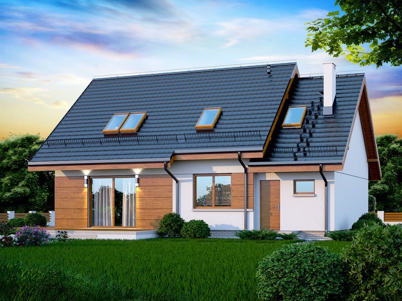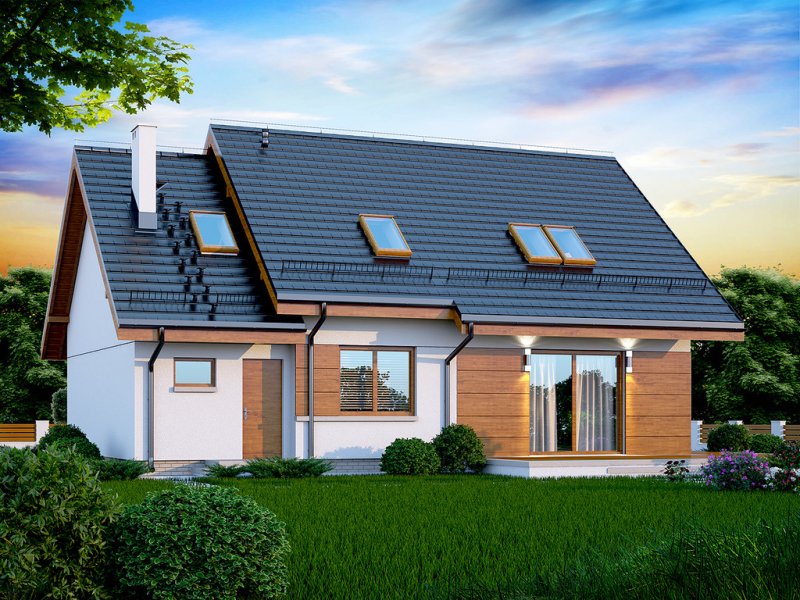 Dachówka: cementowa lub ceramiczna. Stolarka okienna drewniana lub PCV.