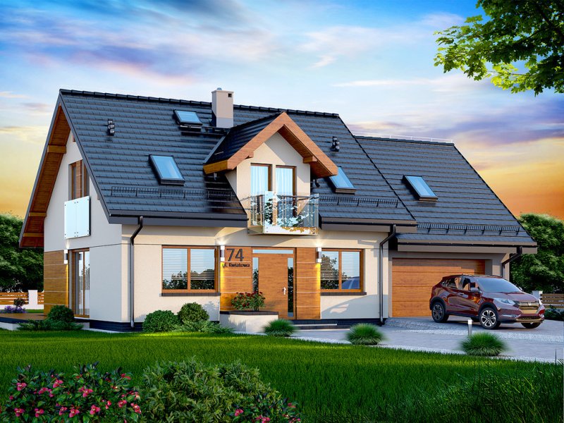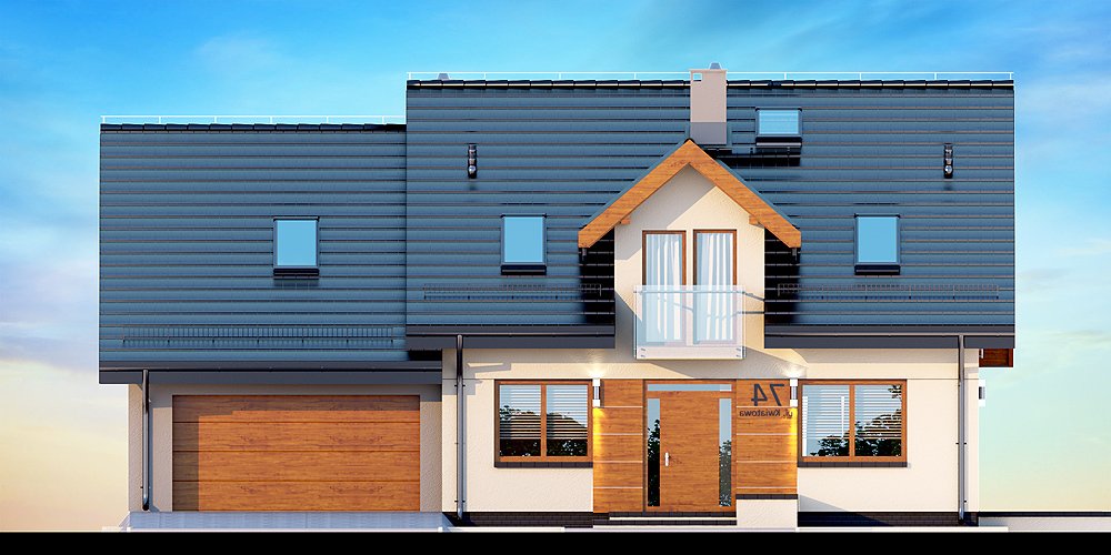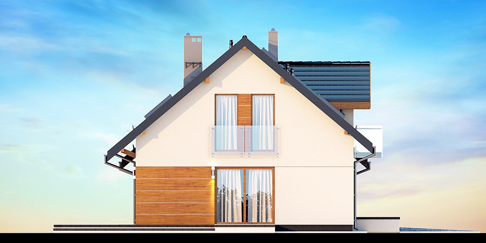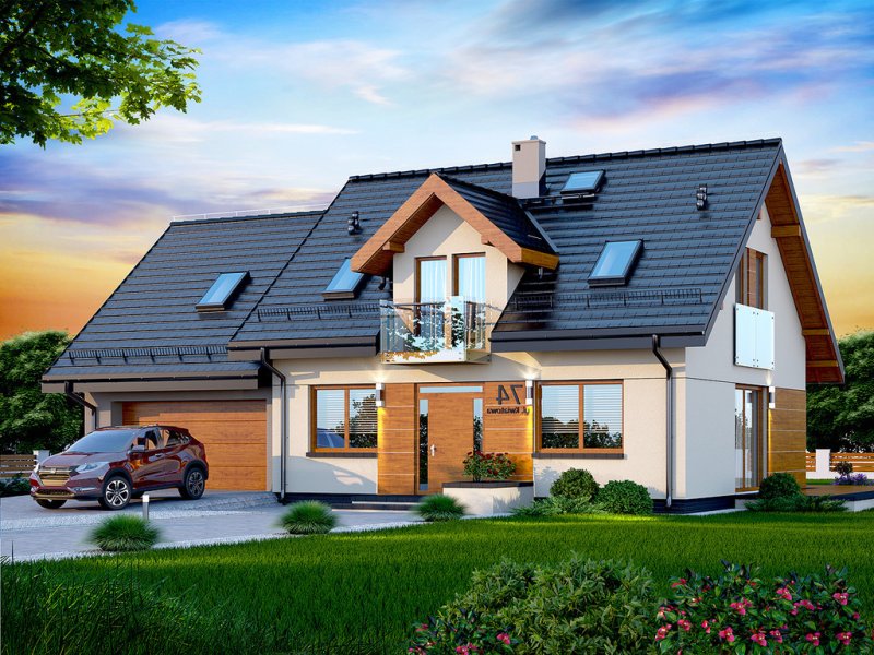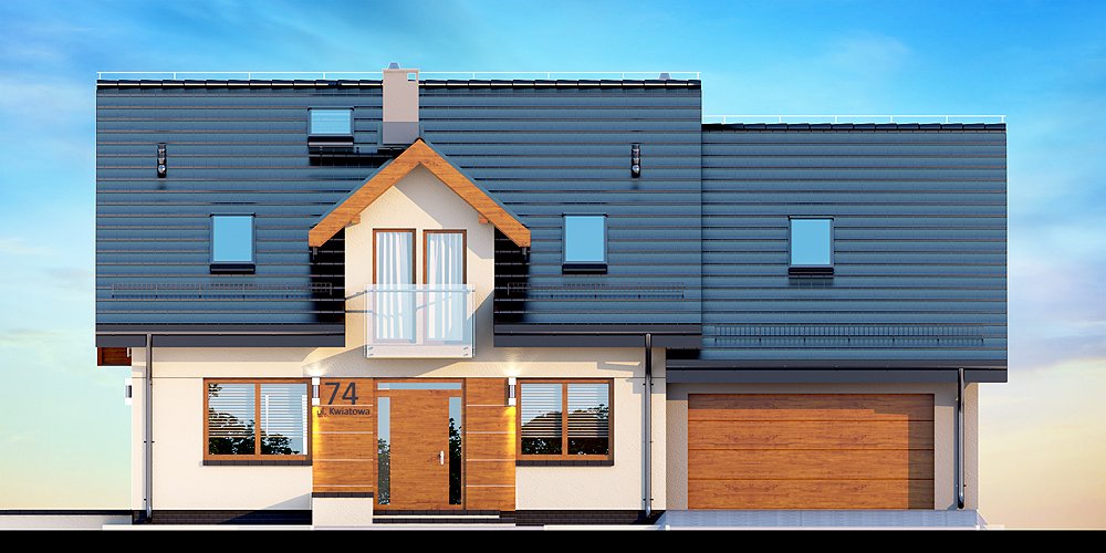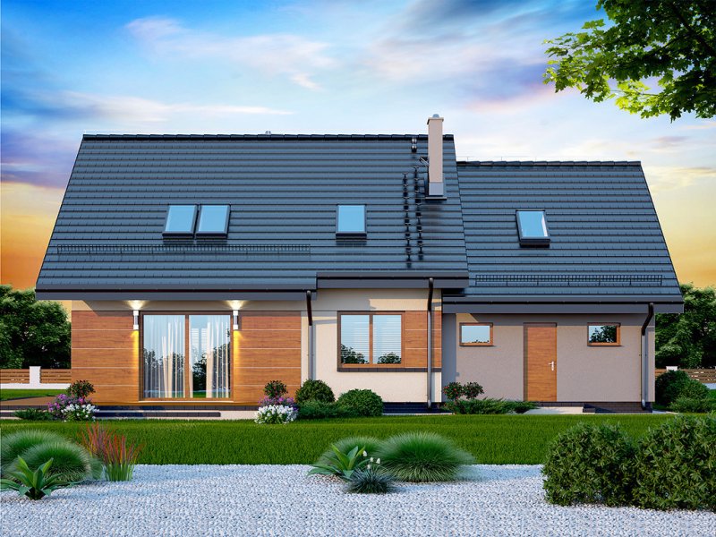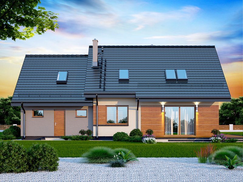Kendra XS 2M to funkcjonalny, atrakcyjny wizualnie dom o prostej i taniej, dokładnie przemyślanej konstrukcji, przeznaczony dla 3-6 osobowej rodziny, o eleganckiej formie i współczesnej estetyce. Jest to budynek parterowy z użytkowym poddaszem, niepodpiwniczony, z garażem dwustanowiskowym. Na parterze zlokalizowana jest obszerna strefa dzienna składająca się z kuchni (która w zależności od potrzeb może być zamykana lub otwarta) słonecznej jadalni oraz salonu otwartego na taras i ogród. Uzupełnieniem kuchni jest pojemna spiżarnia. Schody w holu w zależności od potrzeb mogą być otwarte na salon powiększając w ten sposób przestrzeń dzienną i stanowiąc ciekawy element architektoniczny, mogą też być odizolowane ścianką działową od salonu. Dzięki doświetleniu strefy dziennej zarówno od strony ogrodu jak i z boku dom nadaje się na każdą działkę, zarówno z wjazdem od północy jak i od południa, wschodu bądź zachodu. Dodatkowo na parterze zaprojektowano pokój gościnny / gabinet, łazienkę oraz garderobę / schowek z przejściem do garażu oraz pomieszczenie gospodarcze (kotłownię) dostępną z garażu z wyjściem na ogród dzięki czemu może ona stanowić też miejsce składowania narzędzi ogrodowych. W wiatrołapie przewidziano miejsce na dużą szafę. Na poddaszu znalazły się trzy pokoje oraz wygodna i ustawna łazienka a także strych - może on być przeznaczony na dodatkowy pokój, garderobę, pralnię, siłownię, saunę czy salę z kinem domowym. Strych może zostać też podzielony na kilka pomieszczeń o różnych funkcjach. W projektowaniu domu szczególną uwagę zwrócono na atrakcyjny wygląd zewnętrzny, proporcjonalność bryły budynku, odpowiednie doświetlenie i funkcjonalne rozplanowanie pomieszczeń przy zachowaniu prostoty konstrukcji oraz zwartości bryły domu. Architektura domu to połączenie tradycji z nowoczesnością oraz elegancji z dbałością o proporcje i estetykę. Dom zaprojektowano jako energooszczędny. Dostępne są również inne wersje projektu (Kendra XS BIS, Kendra XS, Kendra Mała BIS, Kendra Mała, Kendra BIS, Kendra, Kendra 2M).