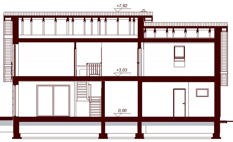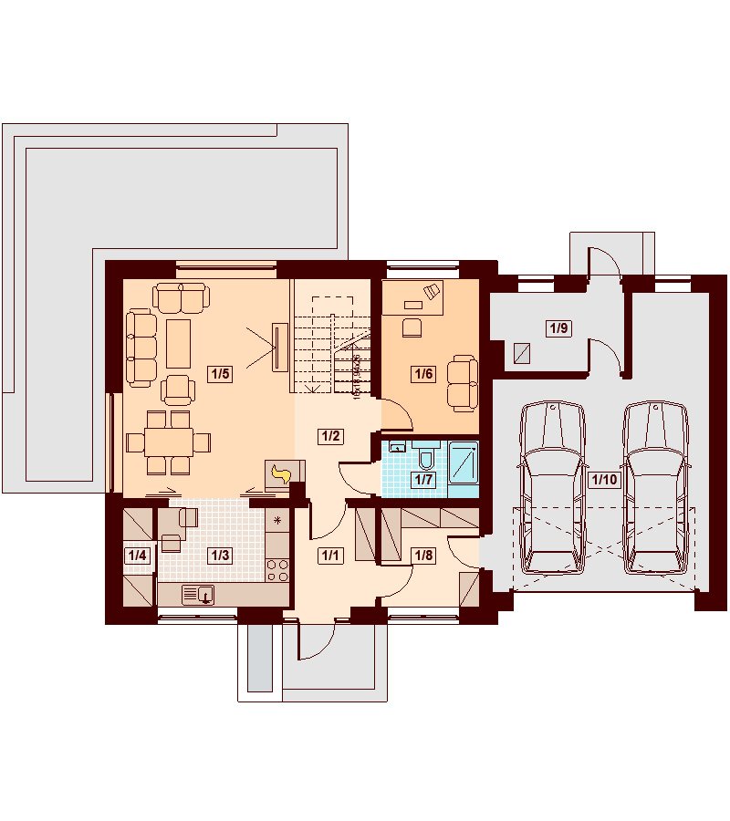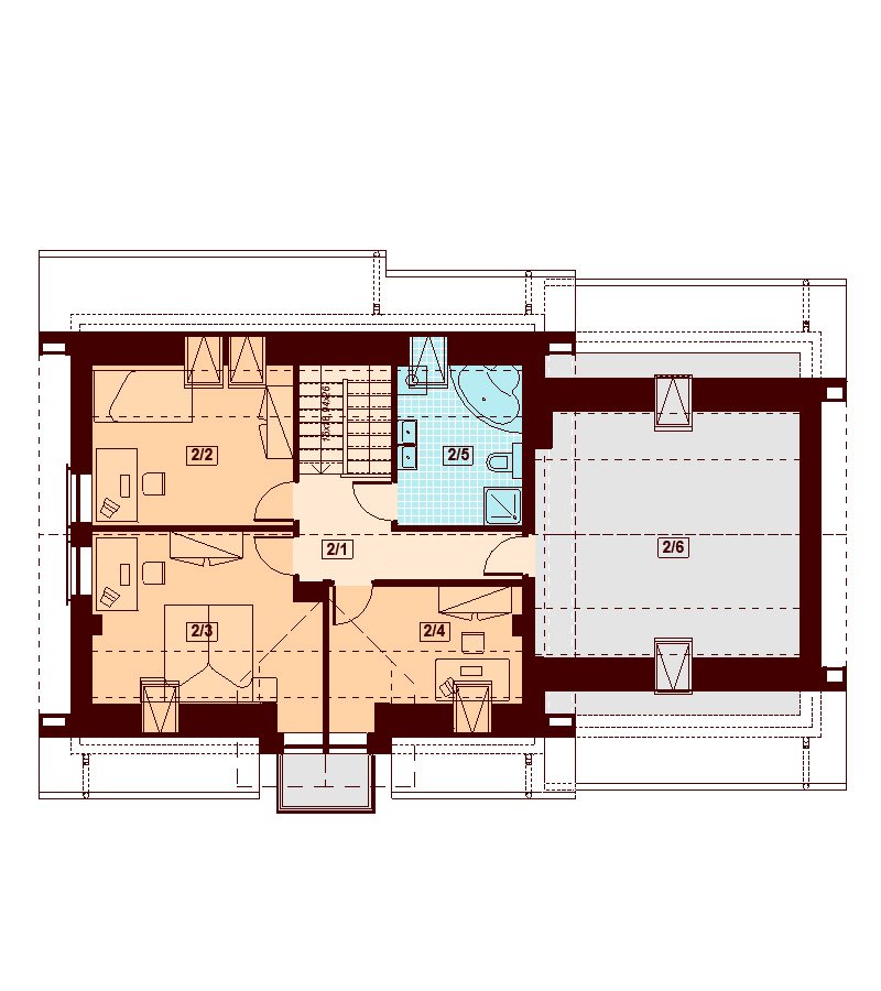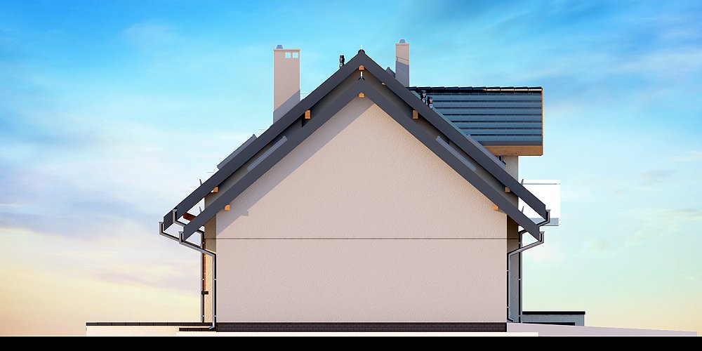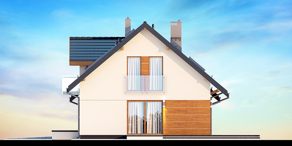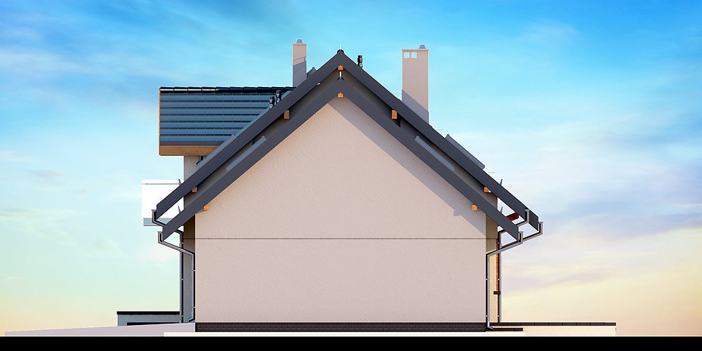 Kendra XS 2M to funkcjonalny, atrakcyjny wizualnie dom o prostej i taniej, dokładnie przemyślanej konstrukcji, przeznaczony dla 3-6 osobowej rodziny, o eleganckiej formie i współczesnej estetyce. Jest to budynek parterowy z użytkowym poddaszem, niepodpiwniczony, z garażem dwustanowiskowym. Na parterze zlokalizowana jest obszerna strefa dzienna składająca się z kuchni (która w zależności od potrzeb może być zamykana lub otwarta) słonecznej jadalni oraz salonu otwartego na taras i ogród. Uzupełnieniem kuchni jest pojemna spiżarnia. Schody w holu w zależności od potrzeb mogą być otwarte na salon powiększając w ten sposób przestrzeń dzienną i stanowiąc ciekawy element architektoniczny, mogą też być odizolowane ścianką działową od salonu. Dzięki doświetleniu strefy dziennej zarówno od strony ogrodu jak i z boku dom nadaje się na każdą działkę, zarówno z wjazdem od północy jak i od południa, wschodu bądź zachodu. Dodatkowo na parterze zaprojektowano pokój gościnny / gabinet, łazienkę oraz garderobę / schowek z przejściem do garażu oraz pomieszczenie gospodarcze (kotłownię) dostępną z garażu z wyjściem na ogród dzięki czemu może ona stanowić też miejsce składowania narzędzi ogrodowych. W wiatrołapie przewidziano miejsce na dużą szafę. Na poddaszu znalazły się trzy pokoje oraz wygodna i ustawna łazienka a także strych - może on być przeznaczony na dodatkowy pokój, garderobę, pralnię, siłownię, saunę czy salę z kinem domowym. Strych może zostać też podzielony na kilka pomieszczeń o różnych funkcjach. W projektowaniu domu szczególną uwagę zwrócono na atrakcyjny wygląd zewnętrzny, proporcjonalność bryły budynku, odpowiednie doświetlenie i funkcjonalne rozplanowanie pomieszczeń przy zachowaniu prostoty konstrukcji oraz zwartości bryły domu. Architektura domu to połączenie tradycji z nowoczesnością oraz elegancji z dbałością o proporcje i estetykę. Dom zaprojektowano jako energooszczędny. Dostępne są również inne wersje projektu (Kendra XS BIS, Kendra XS, Kendra Mała BIS, Kendra Mała, Kendra BIS, Kendra, Kendra 2M).