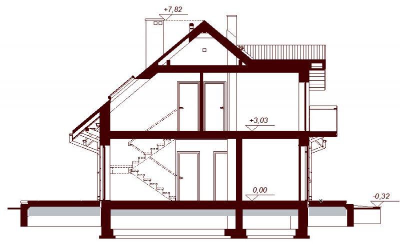 Ściany zewnętrzne i wewnętrzne nośne z betonu komórkowego (24cm), docieplone styropianem 20cm. Ścianki wewnętrze działowe na parterze z bloczków, na poddaszu z płyt GK bądź z bloczków. Ściany fundamentowe z bloczków betonowych. Strop gęstożebrowy Teriva. Wszystkie technologie można zmienić na etapie adaptacji. Elewacje wykończone tynkiem mineralnym. Tynki wewnętrzne gipsowe lub cementowo-wapienne. Dachówka cementowa lub ceramiczna. Stolarka okienna drewniana lub PCV.