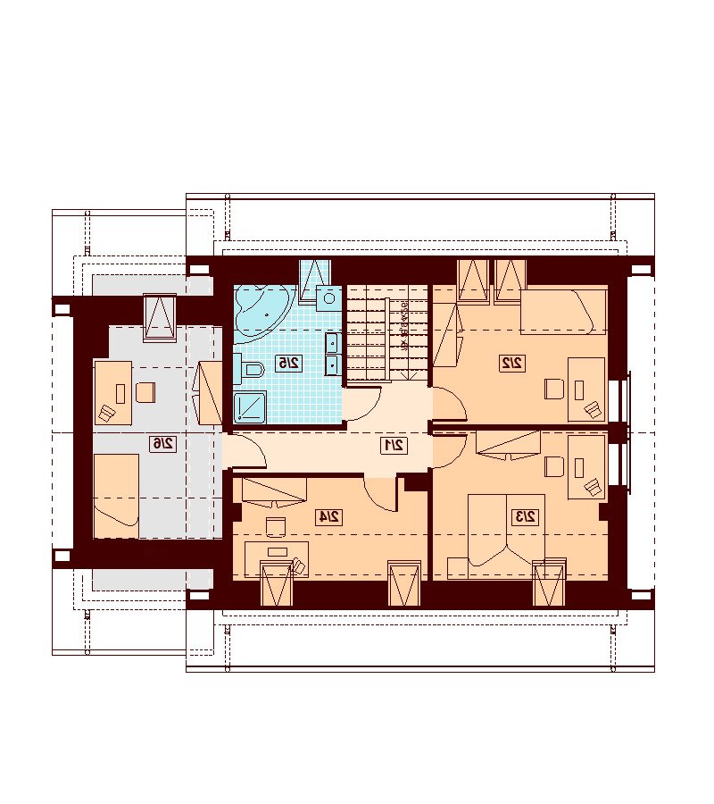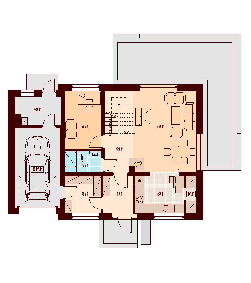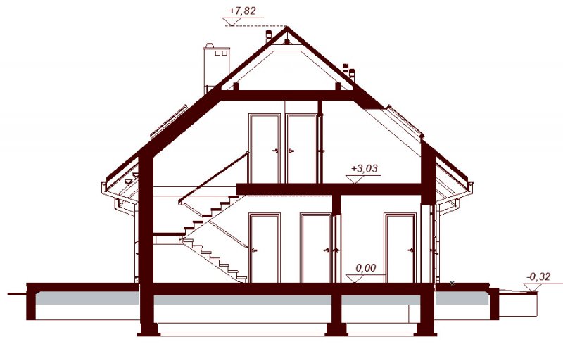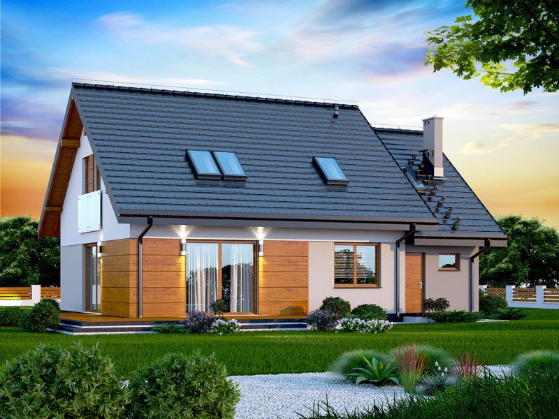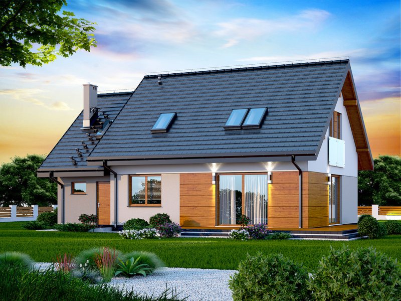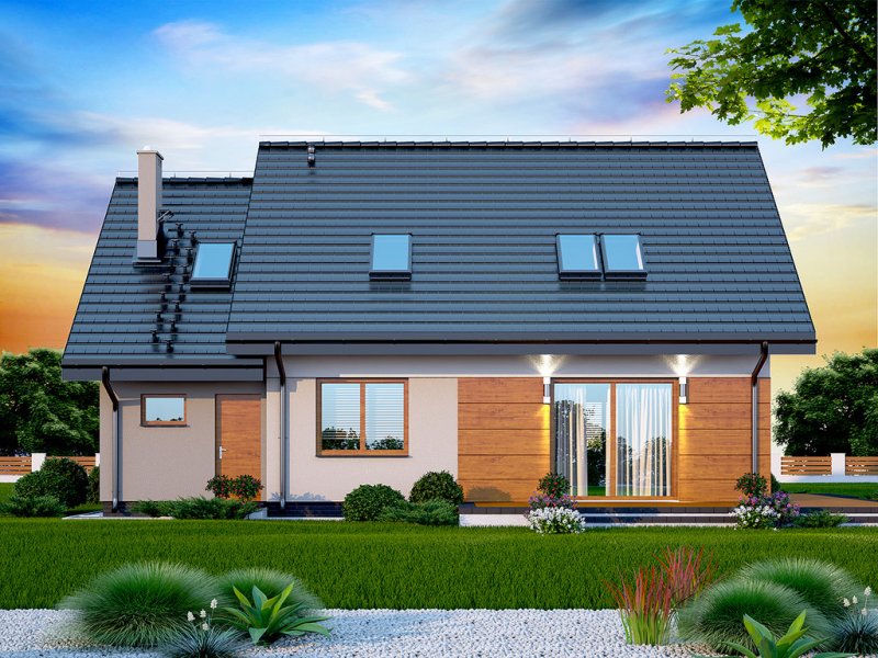 Ściany zewnętrzne i wewnętrzne nośne z betonu komórkowego (24cm), docieplone styropianem 20cm. Ścianki wewnętrze działowe na parterze z bloczków, na poddaszu z płyt GK bądź z bloczków. Ściany fundamentowe z bloczków betonowych. Strop gęstożebrowy Teriva. Wszystkie technologie można zmienić na etapie adaptacji. Elewacje wykończone tynkiem mineralnym. Tynki wewnętrzne gipsowe lub cementowo-wapienne. Dachówka cementowa lub ceramiczna. Stolarka okienna drewniana lub PCV.