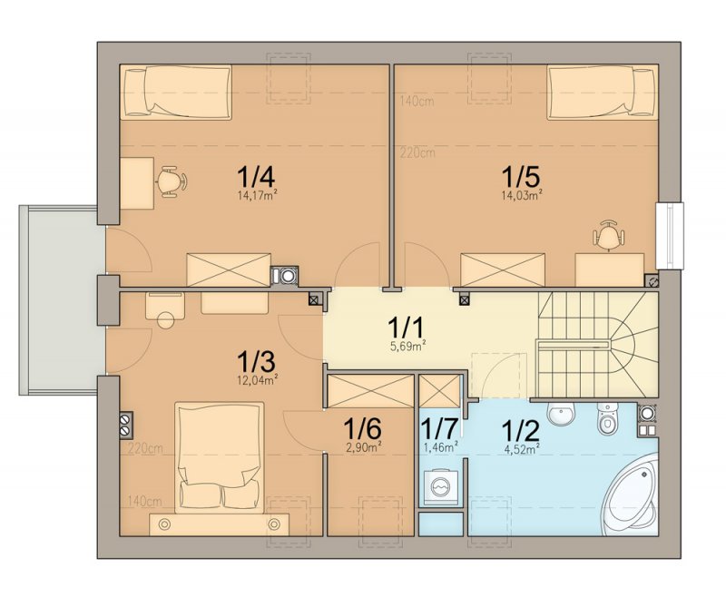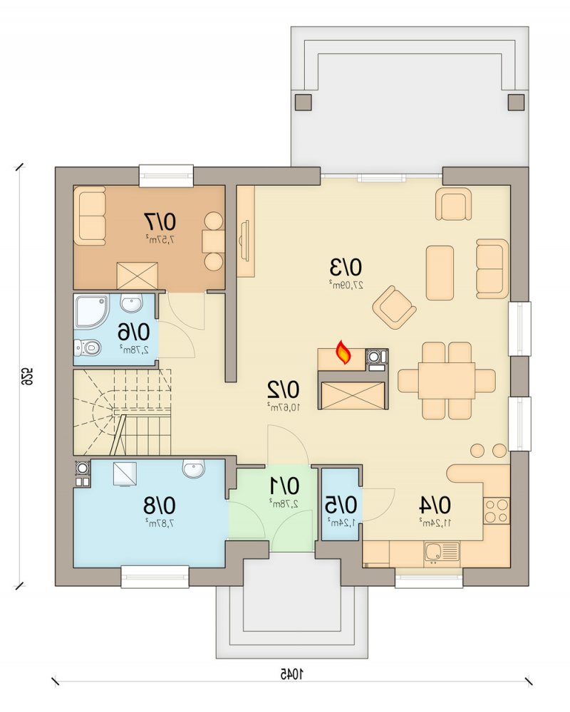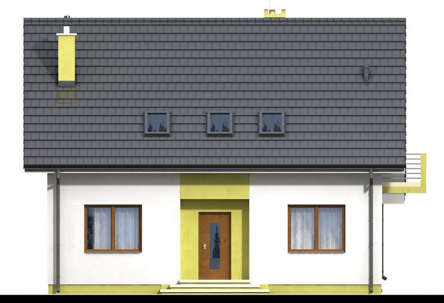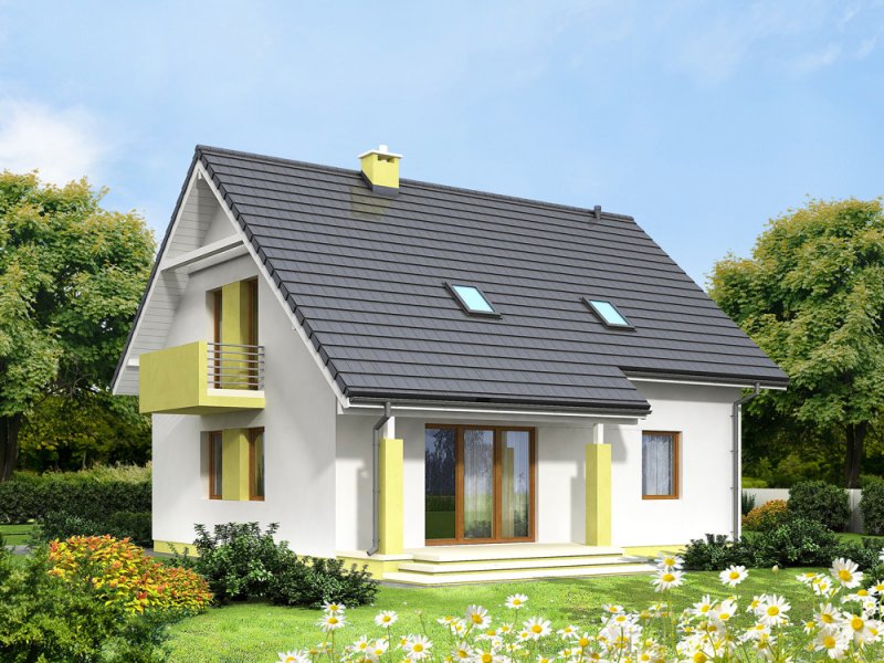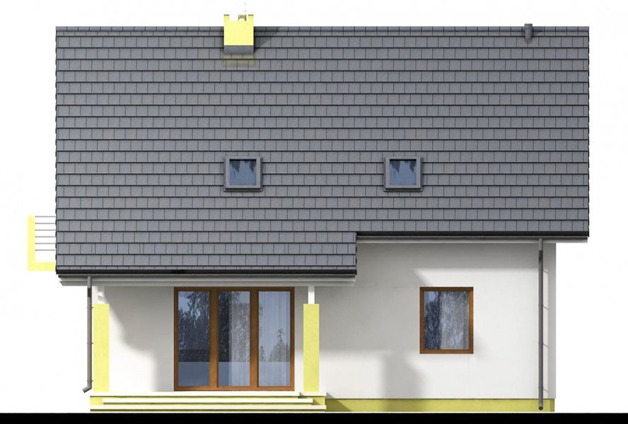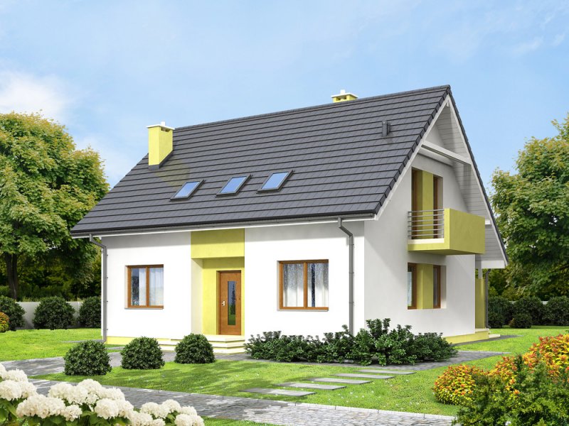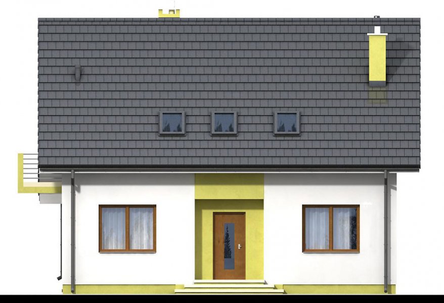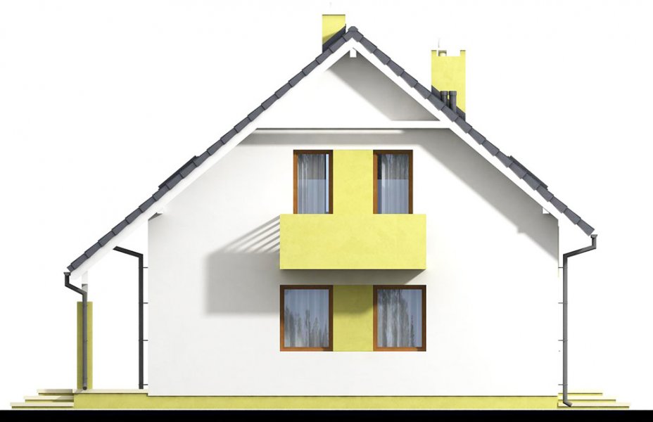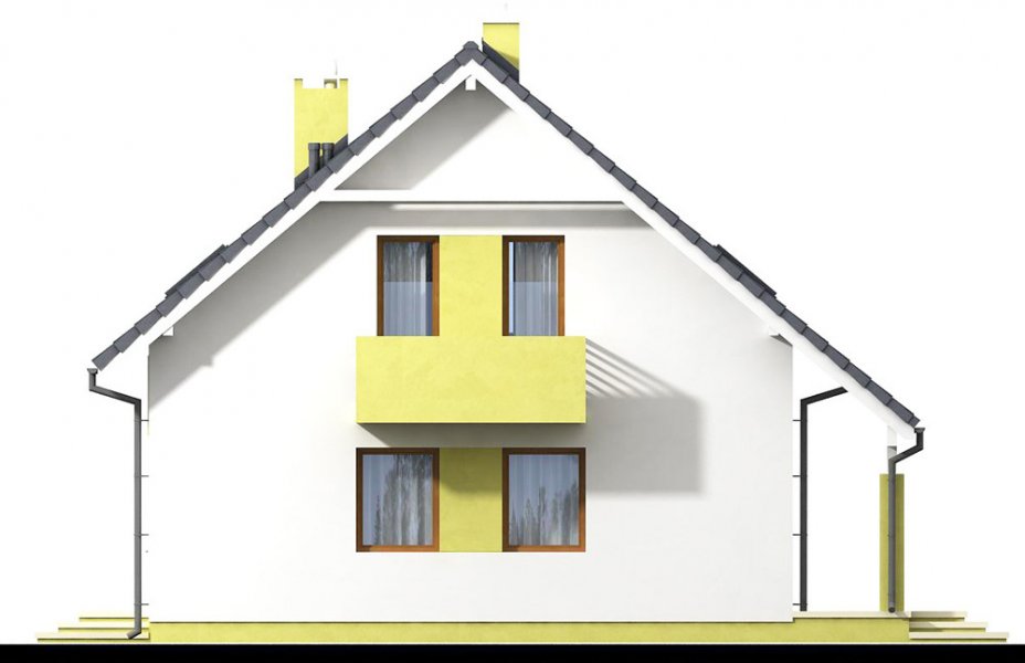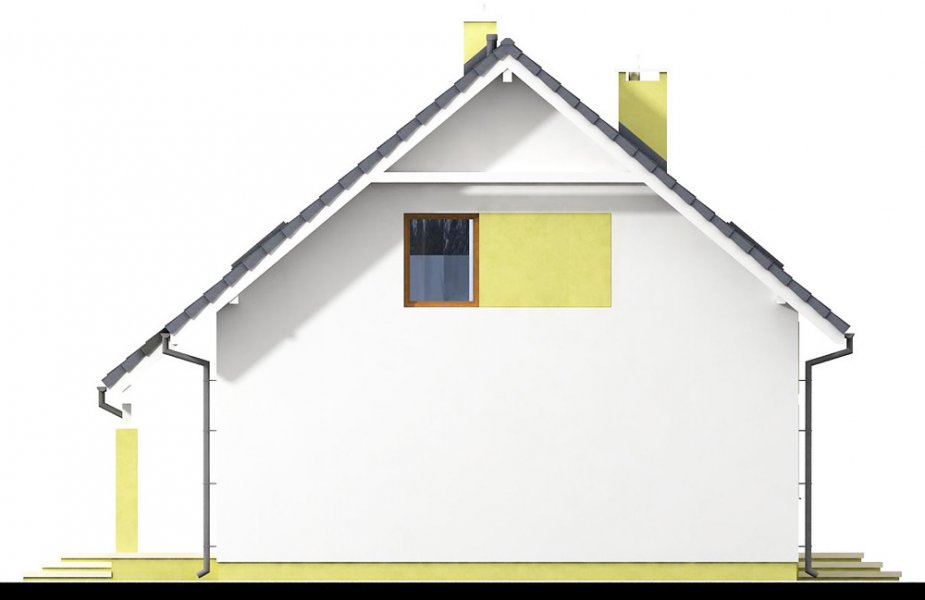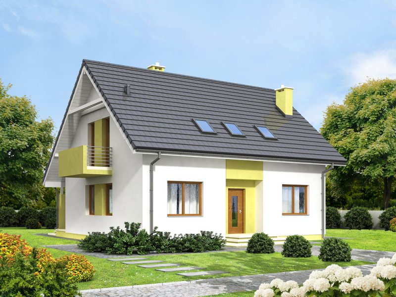 Kiwi 4 to kolejna wersja bardzo popularnego projektu Kiwi. Dom posiada teraz bardziej nowoczesny wygląd, większą powierzchnię, oraz nowy układ funkcjonalny. Projekt przewidziano dla 4-5 osobowej rodziny.Otwarty salon połączony z kuchnią zapewni komfortową przestrzeń dla życia rodzinnego i towarzyskiego. Dodatkowym atutem domu jest zlokalizowany na parterze pokój gościnny ( gabinet ), oraz łazienka, dzięki czemu poddasze pozostanie strefą wyłącznie dla mieszkańców. Dom posiada kotłownię , z wejściem z wiatrołapu. Jej rozmiary pozwalają zainstalować kocioł na paliwo stałe.Na poddaszu znajdują się dwa komfortowe pokoje, sypialnia połączona z garderobą, oraz duża łazienka z pralnią.Dostateczna wysokość ściany kolankowej umożliwi bardzo dobre wykorzystanie powierzchni pod skosami dachu.Prosta bryła i nieskomplikowana konstrukcja, zdecydowanie ułatwią i przyspieszą realizację. Aby zapewnić niskie koszty eksploatacji i nie zwiększać kosztów budowy, w projekcie zastosowano rozwiązania energooszczędne – na poziomie ekonomicznie uzasadnionym.
