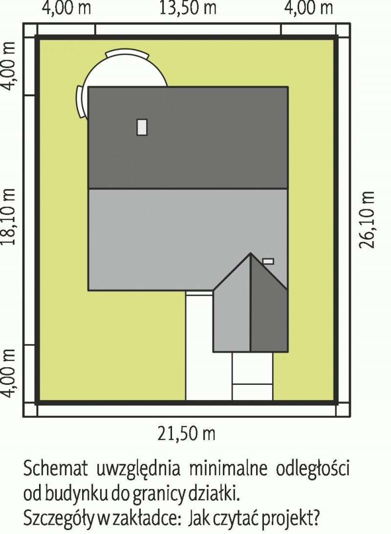 - Min. wymiary działki 21.50x28.70 m