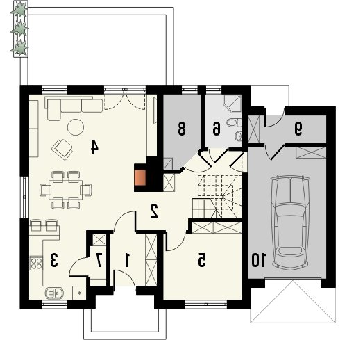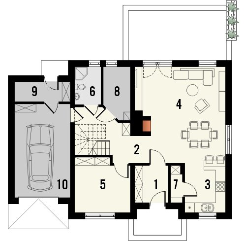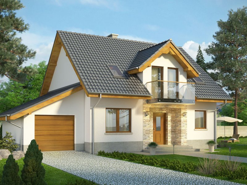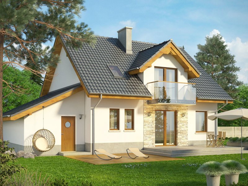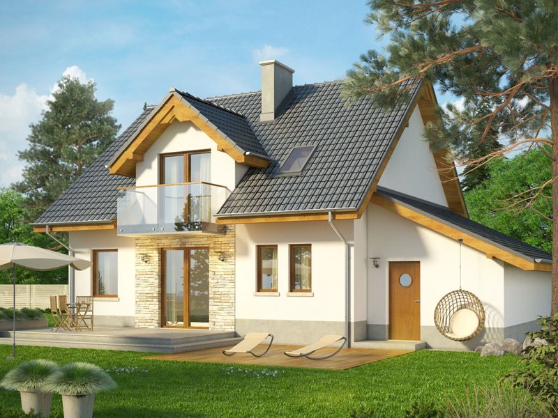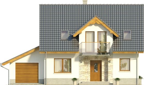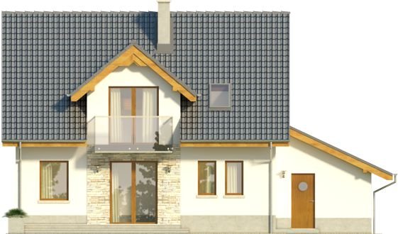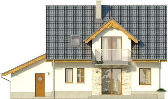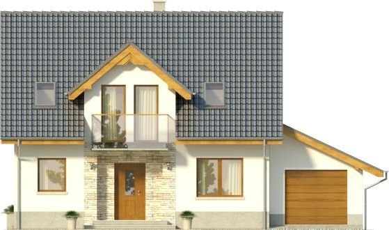 Kolia jest średniejwielkości domem jednorodzinnym pod dachem dwuspadowym, bez podpiwniczenia,dostępnym w wariantach z garażem lub bez. Na parterze znalazł się salon oatrakcyjnym metrażu, kuchnia ze spiżarką oraz dodatkowy pokój. Ponadtozaprojektowano łazienkę, pomieszczenie gospodarcze oraz, wariantowo, garaż zdrugim pomieszczeniem gospodarczym. Pomieszczenia na piętrze to trzy sypialnie,łazienka oraz garderoba.Domek charakteryzuje sięświeżą architekturą o przejrzystym układzie. Pośrodku elewacji frontowej oraztylnej zaprojektowano lukarny z przeszklonymi balkonami, z boku opcjonalnieznaleźć się może garaż. Atrakcyjna strefa wejściowa znalazła się w podcieniu,dodatkowe zadaszenie tworzy balkon. Wyróżniona została ponadto okładzinąkamienną, a w podobny sposób urozmaicono również elewację od strony ogrodu.Materiały, z którychwykonano dom, to gazobeton + styropian (ściany), tynk + okładzina kamienna(wykończenie ścian), strop TERIVA , drewno (więźba) dachówka ceramiczna(pokrycie dachu). Na etapie adaptacji wprowadzić można inne materiały.