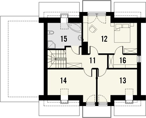 Projekt przewiduje wykonanie ścian z bloczków gazobetonowych ocieplonych styropianem. Strop typu TERIVA, więźba dachowa drewniana. Dach może zostać pokryty dachówką ceramiczną. Materiały wykończeniowe elewacji to tynk i okładzina z płytek kamiennych.