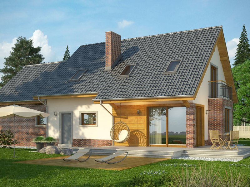 Ściany przewidziano zgazobetonu z dociepleniem, strop TERIVA, więźba wykonana jest z drewna. Dachkryty dachówką ceramiczną lub cementową, elewacje tynkowane, częściowo obłożoneklinkierem i drewnem. Inne materiały dostępne są na etapie adaptacji.