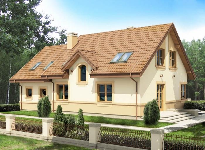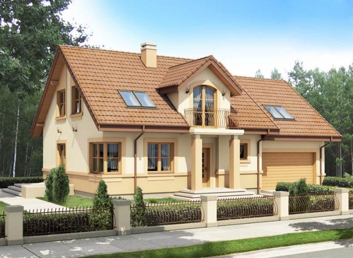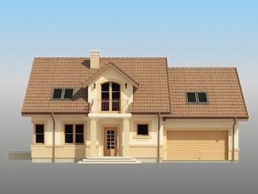 Jednorodzinny dom parterowy z poddaszem użytkowym i garażem dwustanowiskowym, niepodpiwniczony