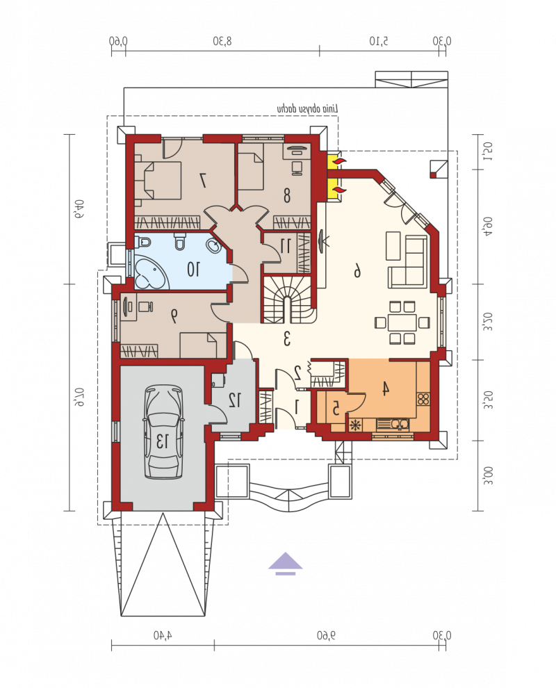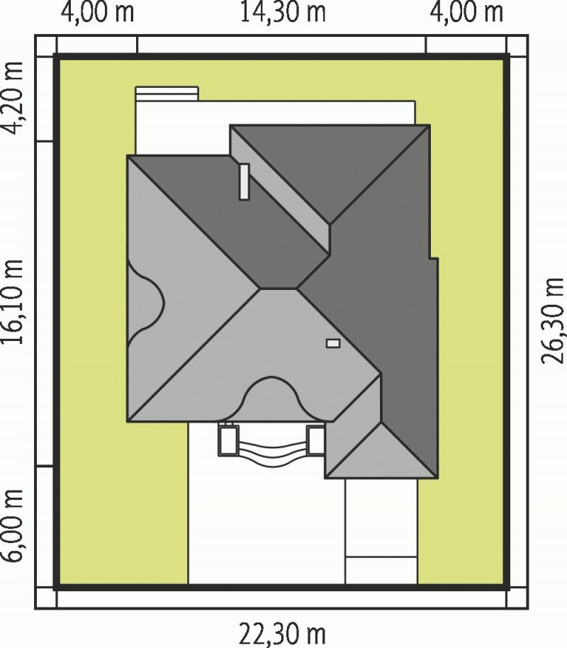 - Min. wymiary działki 22.30x26.30 m