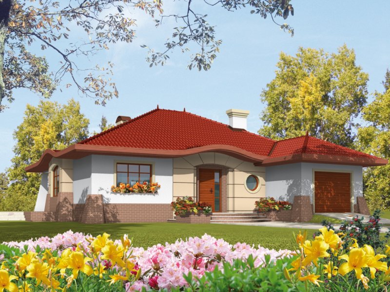 Dom parterowy, częściowo podpiwniczony, z poddaszem do późniejszej adaptacji, z garażem jednostanowiskowym. Przeznaczony dla 4-5-osobowej rodziny. W strefie dziennej zaplanowano pokój dzienny z kominkiem, jadalnię oraz kuchnię ze spiżarnią. Znalazło się tu również pomieszczenie gospodarcze, które można przeznaczyć na pralnię. Strefę nocną tworzą trzy sypialnie, a także komfortowa łazienka oraz garderoba. Na poddaszu przewidziano przestrzeń, w której można wygospodarować dodatkowe pokoje i łazienkę, dostępne dzięki schodom znajdującym się w holu. W podpiwniczeniu zaplanowano część techniczną z dużym pomieszczeniem gospodarczym. Kornelia 01 to ciekawa forma, podkreślona wysmakowanymi detalami. Atrakcyjnym elementem domu jest gustowna fala, akcentująca wyjątkowy styl budynku. Perfekcyjnie rozplanowany układ funkcjonalny cieszy domowników wygodnymi rozwiązaniami oraz atmosferą swobody. Na szczególną uwagę zasługuje komfortowy salon z kominkiem, w którego blasku, można odnaleźć spokój i rodzinne ciepło. Kornelia 01 to elegancki azyl, zaprojektowany z myślą o inwestorach, którzy cenią klasyczny szyk.