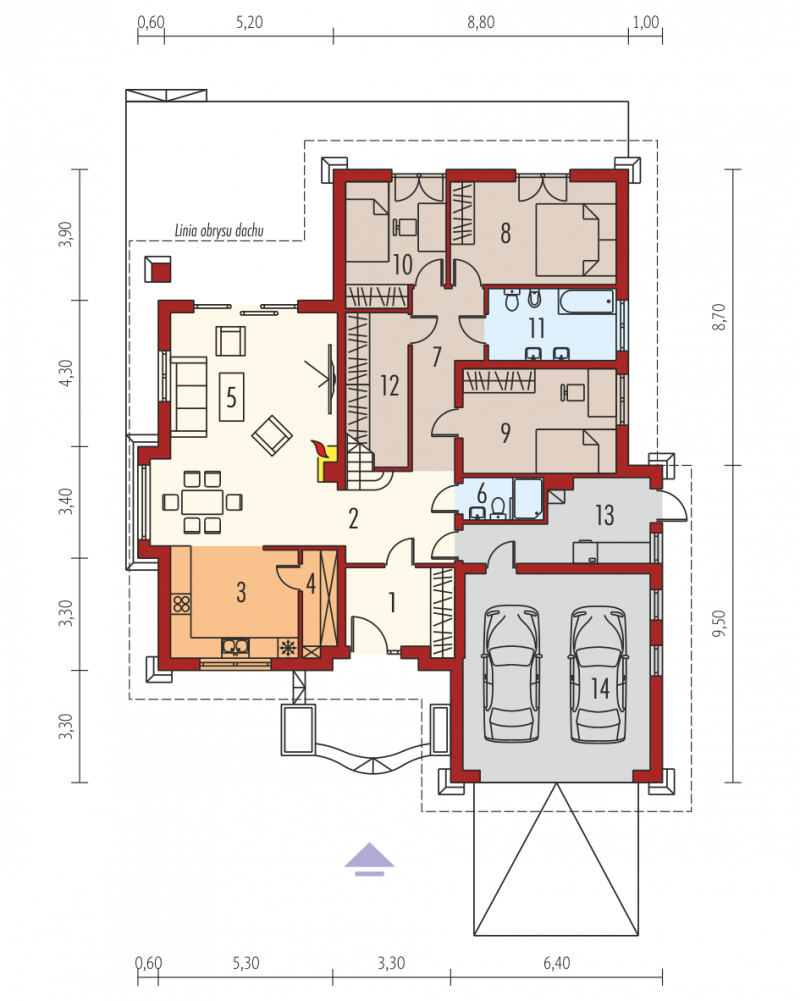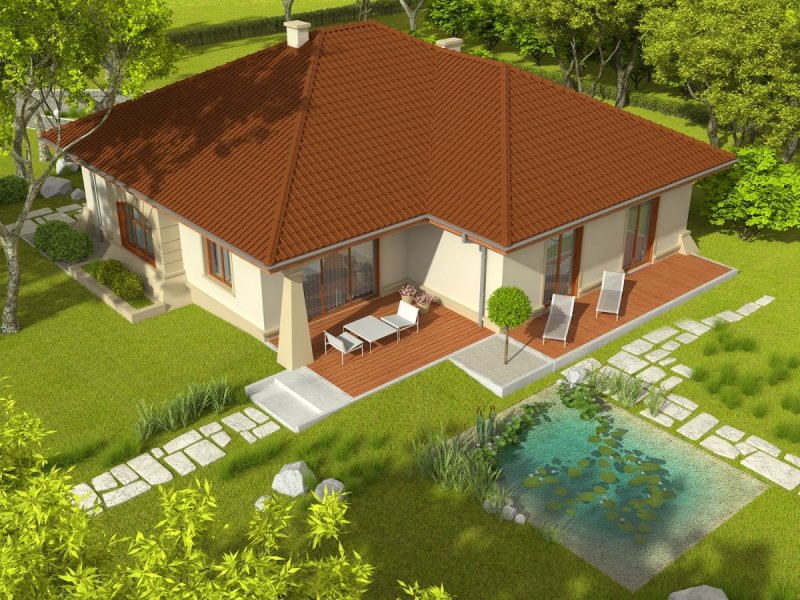 Dach: konstrukcja drewniana, dachówka ceramiczna lub cementowa, więźba dachowa dostępna również w systemie prefabrykacji drewnianej