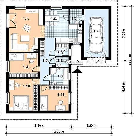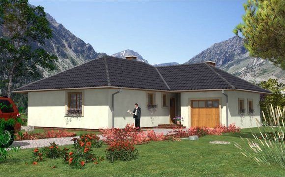 Budynek jednorodzinny, parterowy, niepodpiwniczony, 4 pokoje, kuchnia z jadalnią, garaż