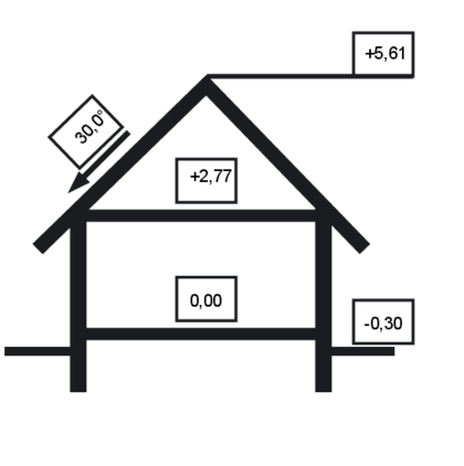 - Kąt nachylenia dachu 30.00°