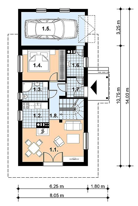 Budynek jednorodzinny, parterowy, z poddaszem mieszkalnym, niepodpiwniczony, 4 pokoje, kuchnia, garaż