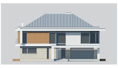 Elewacje: tynk silikonowy kolor: biały, szary, kamień naturalny - trawertyn, płyty elewacyjne imitujące drewno.