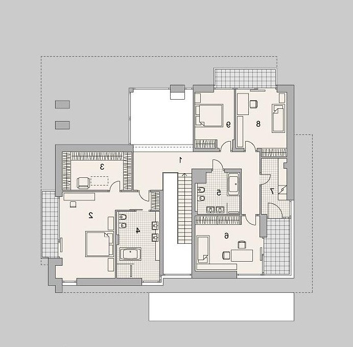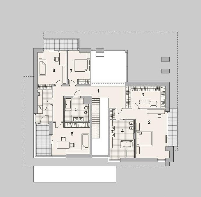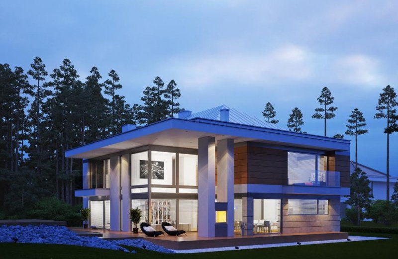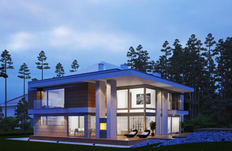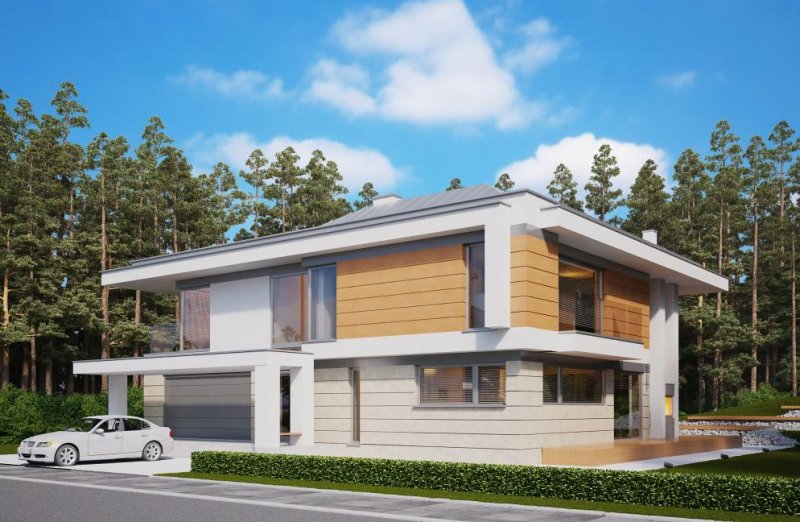 Nowoczesny, luksusowy dom piętrowy dla dużej rodziny. W piwnicy znajdują się dwa pokoje rekreacyjne i sauna. Na piętrze cztery pokoje, jeden z własną łazienką i garderobą. Przestronny salon połączony z jadalnią to ulubione miejsce spotkań dla całej rodziny. Zastosowanie dużych okien w całym domu powoduje, że wnętrze jest jasne i awangardowe.