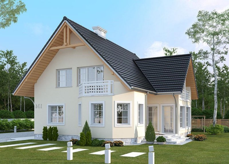- Elewacje: wykończone tynkiem akrylowym, cokoły obłożone płytkami ceramicznymi