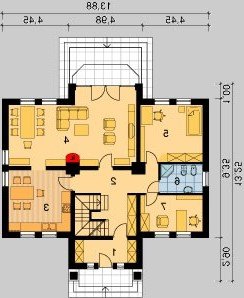 Dom jednorodzinny, parterowy, z poddaszem użytkowym, częściowo podpiwniczony.