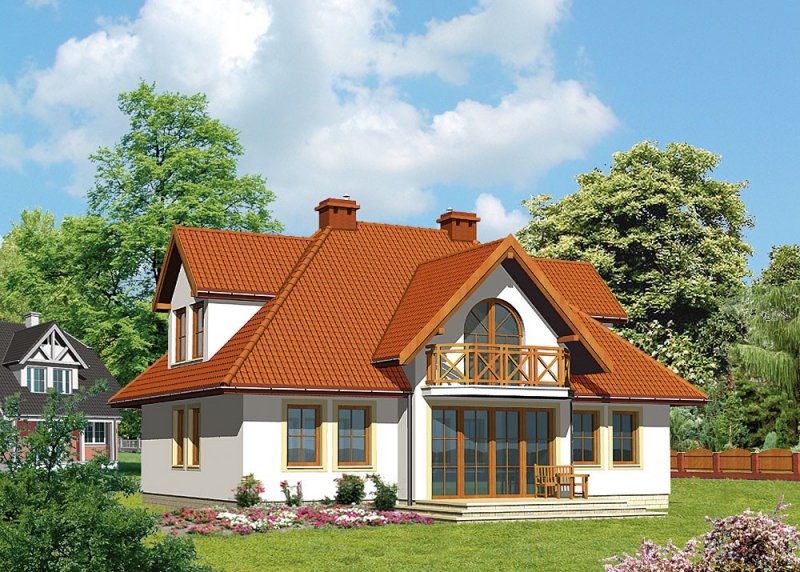 - Elewacje: wykończone tynkiem akrylowym, cokoły obłożone płytkami kamiennymi