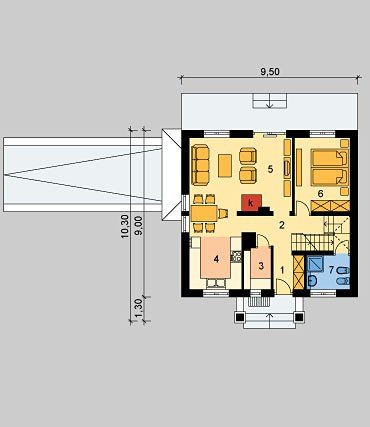 Dom parterowy, jednorodzinny, podpiwniczony, z poddaszem użytkowym i jednostanowiskowym garażem.