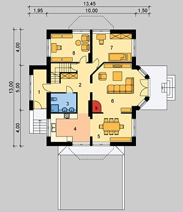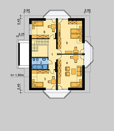 - Kąt nachylenia dachu 45.00°
