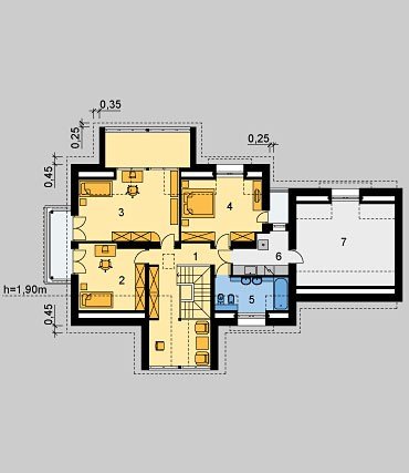 - Kąt nachylenia dachu 45.00°