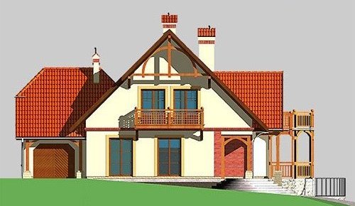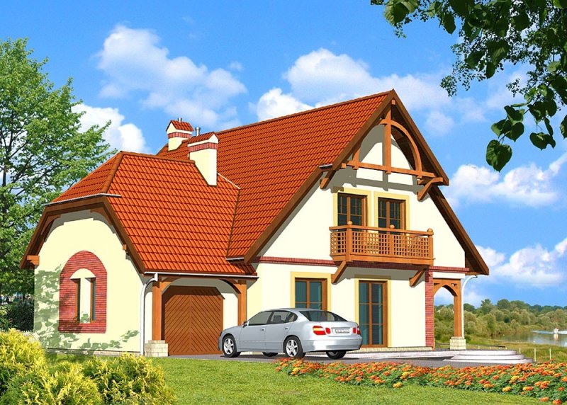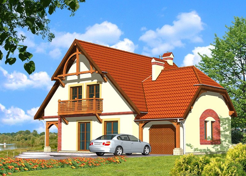 Dom jednorodzinny, parterowy, z poddaszem użytkowym, z jednostanowiskowym garażem.